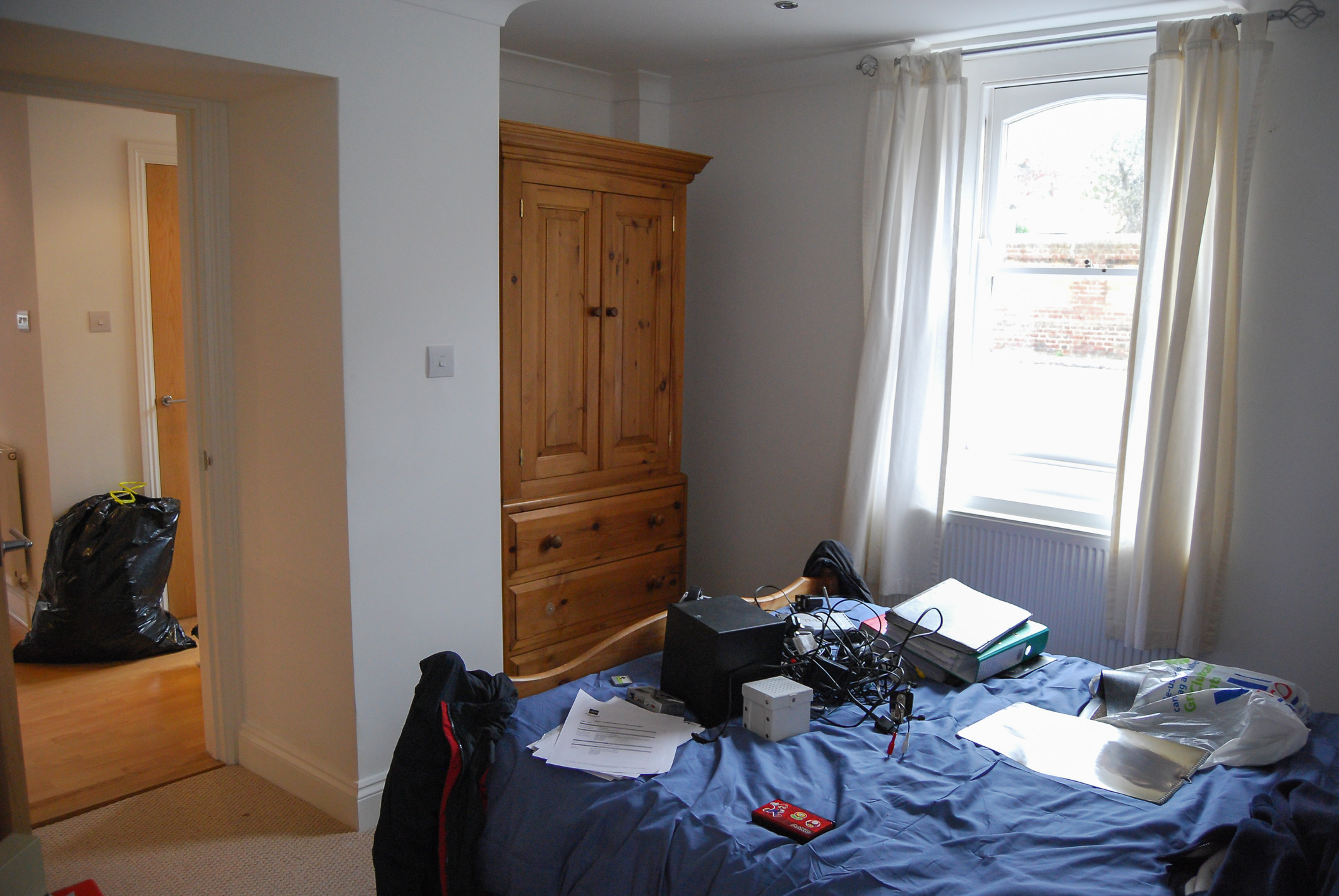 After a week’s delay, Friday night saw Robert borrowing my car to finally move out of the family home and into his own flat. Today Ian, Marcelle, and I got an invitation to visit.