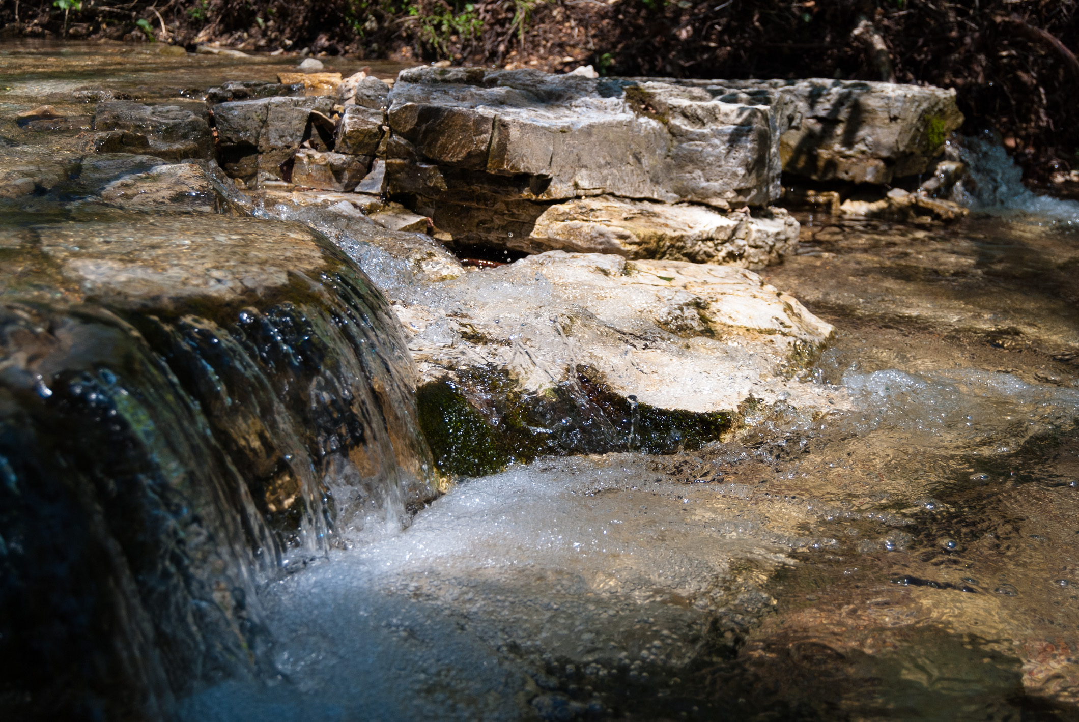 If was a bit cold at first, but the weather was glorious and now everything is starting to go green the colours were wonderful. The trail was very muddy in places, and I had great fun slopping through all the mud in my bare feet while Ginger struggled to keep her shoes dry. I took today’s picture while I was standing in Camp creek washing some of the mud off. We did the six odd miles of the two trails in plenty of time to pick up the big kids from school.