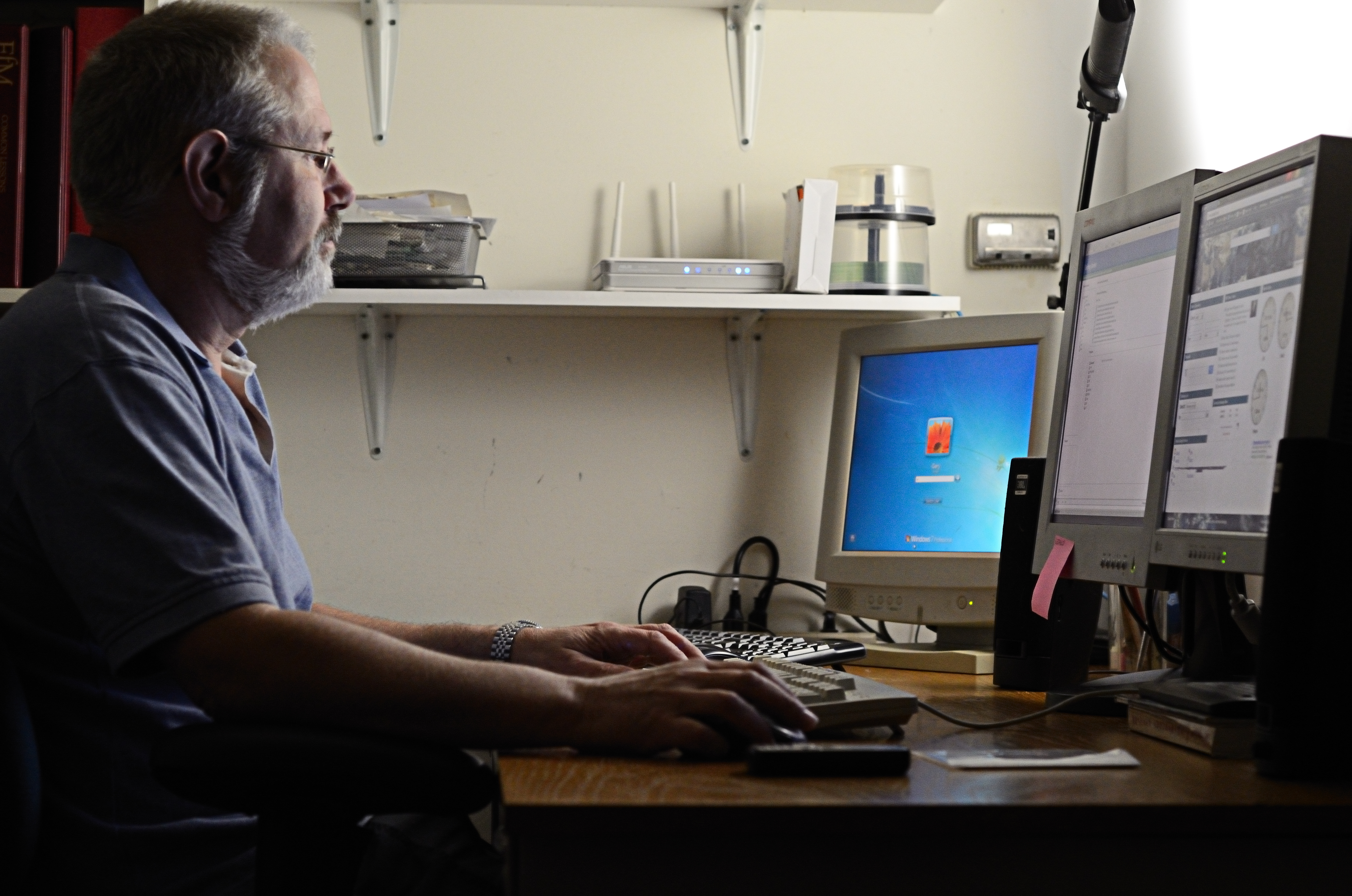 So we’ve this view of me to look forward to for the remainder of the year. Of particular note is the far monitor – it’s on my new machine, which I’ve had for a few days, but what with the holiday I’ve only just got around to hooking it up. Now I’ve got several days of software installation and file transfers before I start working with it.