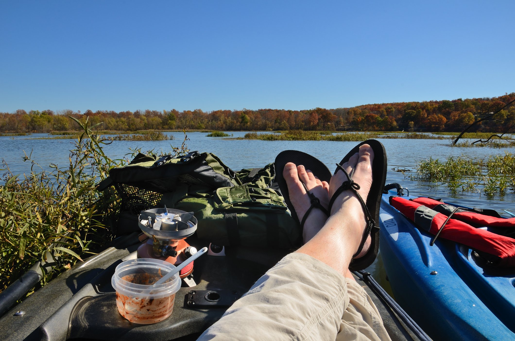 Relaxing in the Kayak after lunch at Lake Springfield, Missouri