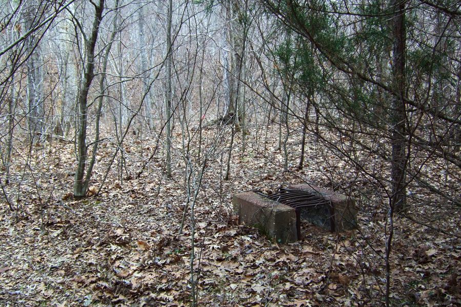 Our plan was to camp somewhere near Harmon Spring Trail Camp, and once we were on our way we stopped only briefly so that I could take pictures of one of the old Edward Beecher Recreation Area campground grills, which are scattered around the area and are being slowly consumed by the undergrowth. I also took a picture of the completely unspectacular spring, actually an artesian well, which looks like a large metal gate post stuck in the ground, out of which runs a length of metal pipe with a bit of rubber tube on the end, from which the water runs into a concrete trough. We didn’t take any water from the spring as we’d already filled up with water from the creek – filtering and purifying it using the MSR SweetWater Water Purifier which combines a ceramic filter, an active charcoal filter plus a chlorine treatment.