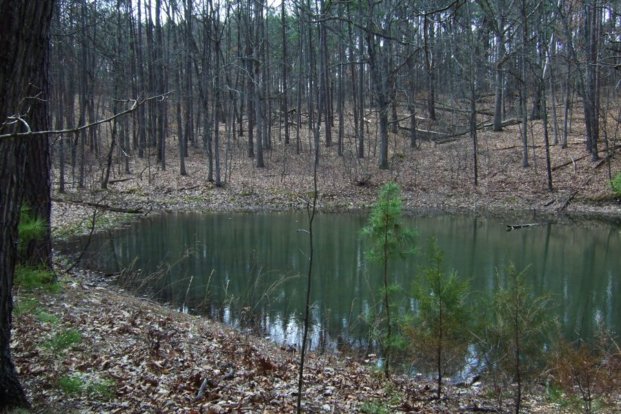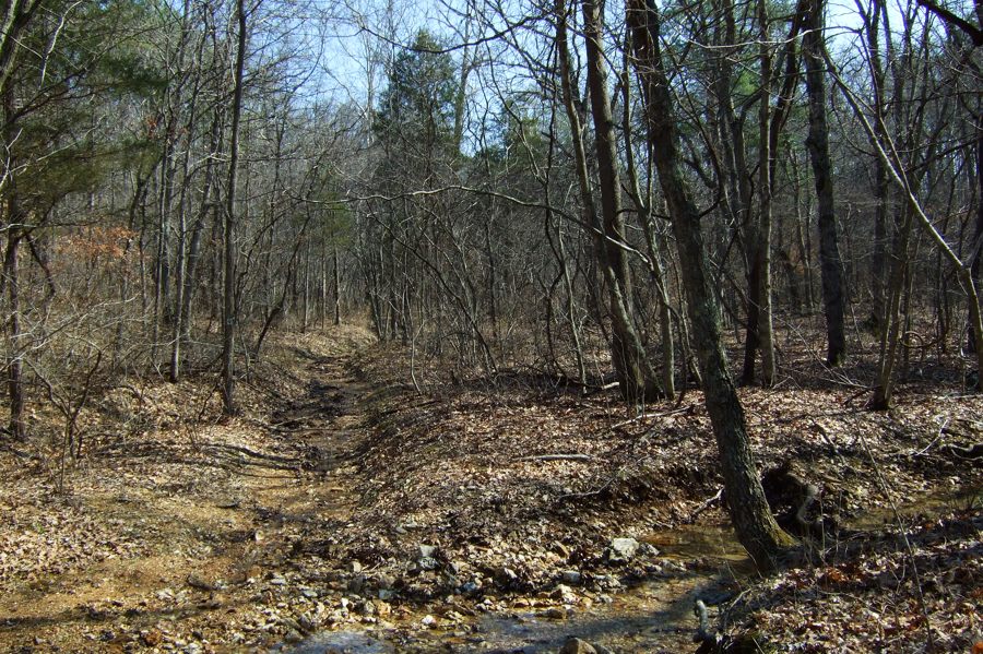 Once we’d dropped into Smith Mill Hollow, we found the creek had plenty of water in it. So much for carrying a load of extra water. We decided to hike on down to where the trail rises back up out of the hollow before looking for a campsite. We bushwhacked for about a quarter mile from the trail to the creek – only to find the previously full creek absolutely dry. So it was just as well we had plenty of water with us.