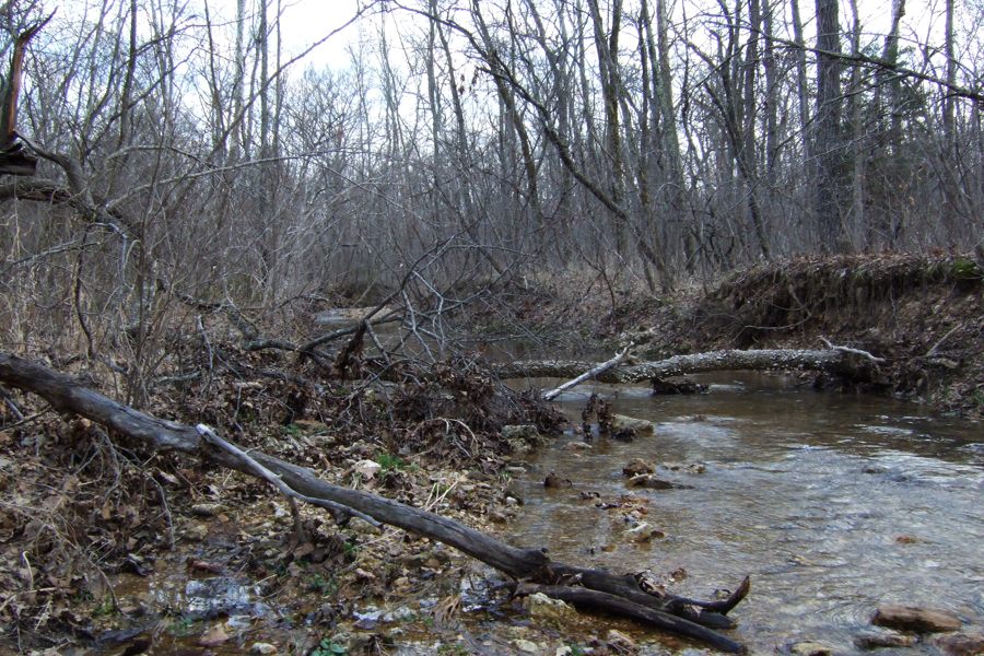 The area was too well used for our liking, so after a quick look at the huge stock pond built around the spring we carried on along the trail until we crossed Little Brazil Creek for the final time. At this point the trail then climbs back onto the ridge over to Brazil Creek. We left the trail following a forest road running North parallel to Little Brazil Creek, and bushwhacked off the road to find a camping spot near the creek. The weather forecast was good, and the overnight temperature predicted to be up in the fifties, so we decided to not set the tent’s fly, and watch the stars from our bed. I found a pool in the creek deep enough for a good, if cold, wash.