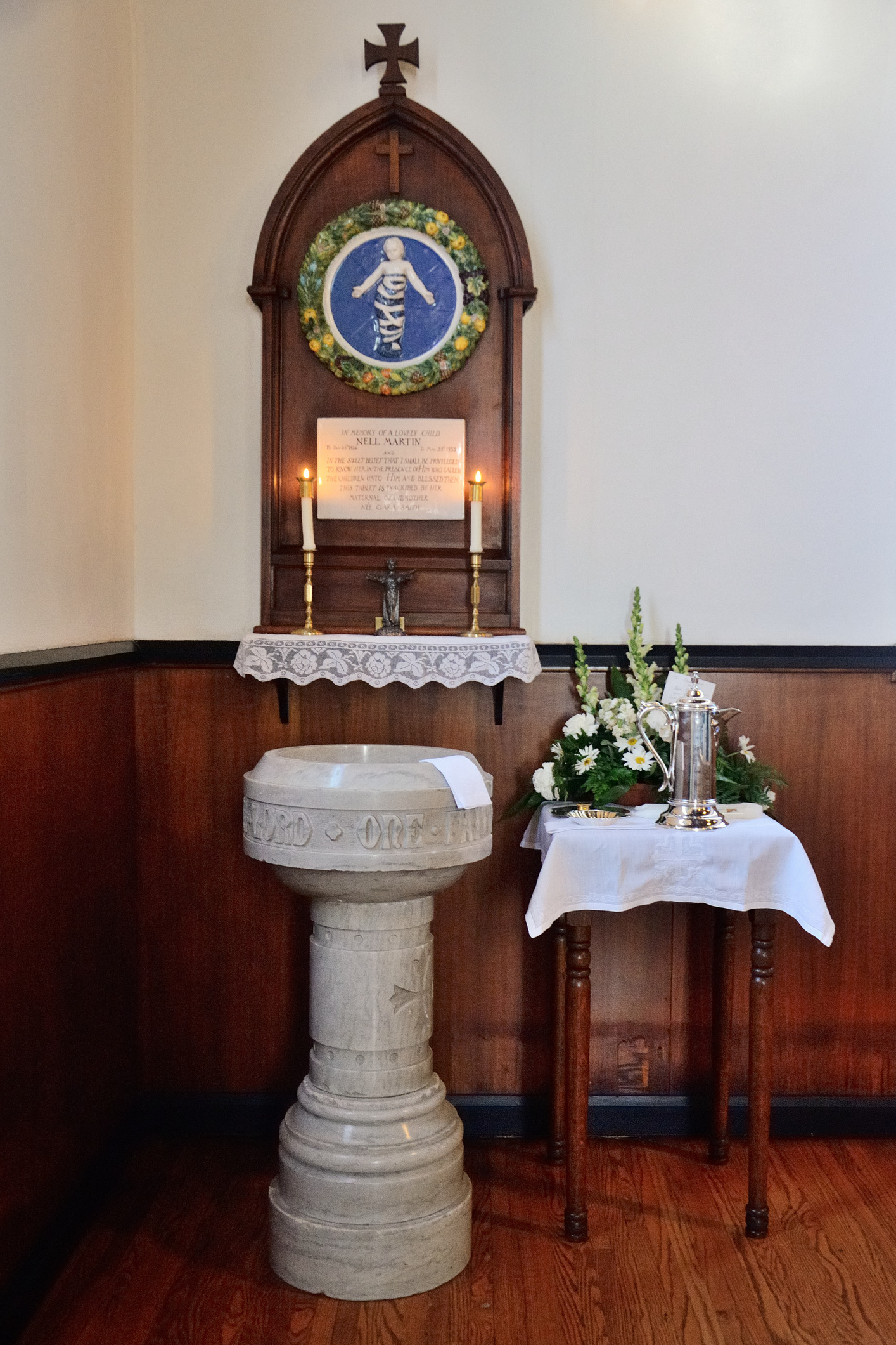 Taking pictures in church I try to be as unobtrusive as possible. No flash (during services) and I try to keep out of the way. With four baptisms and our traditional call to all the children to come up and watch, there was a huge crush around the font. I was so far back I didn’t think I’d be able to get any pictures. Fortunately, I noticed a gap near the door that everyone was avoiding because the main action around the fount was blocked from view. It looked and proved to be an excellent place for some candid shots. I spotted the picture of Fr. Ken leaning over the choir kids heads to light the candle after the second baptism, and just hoped no one would move so he had to stretch out to light the candle after the third too. He did, and I love the picture with all the choir kids intently watching as the candle was lit.