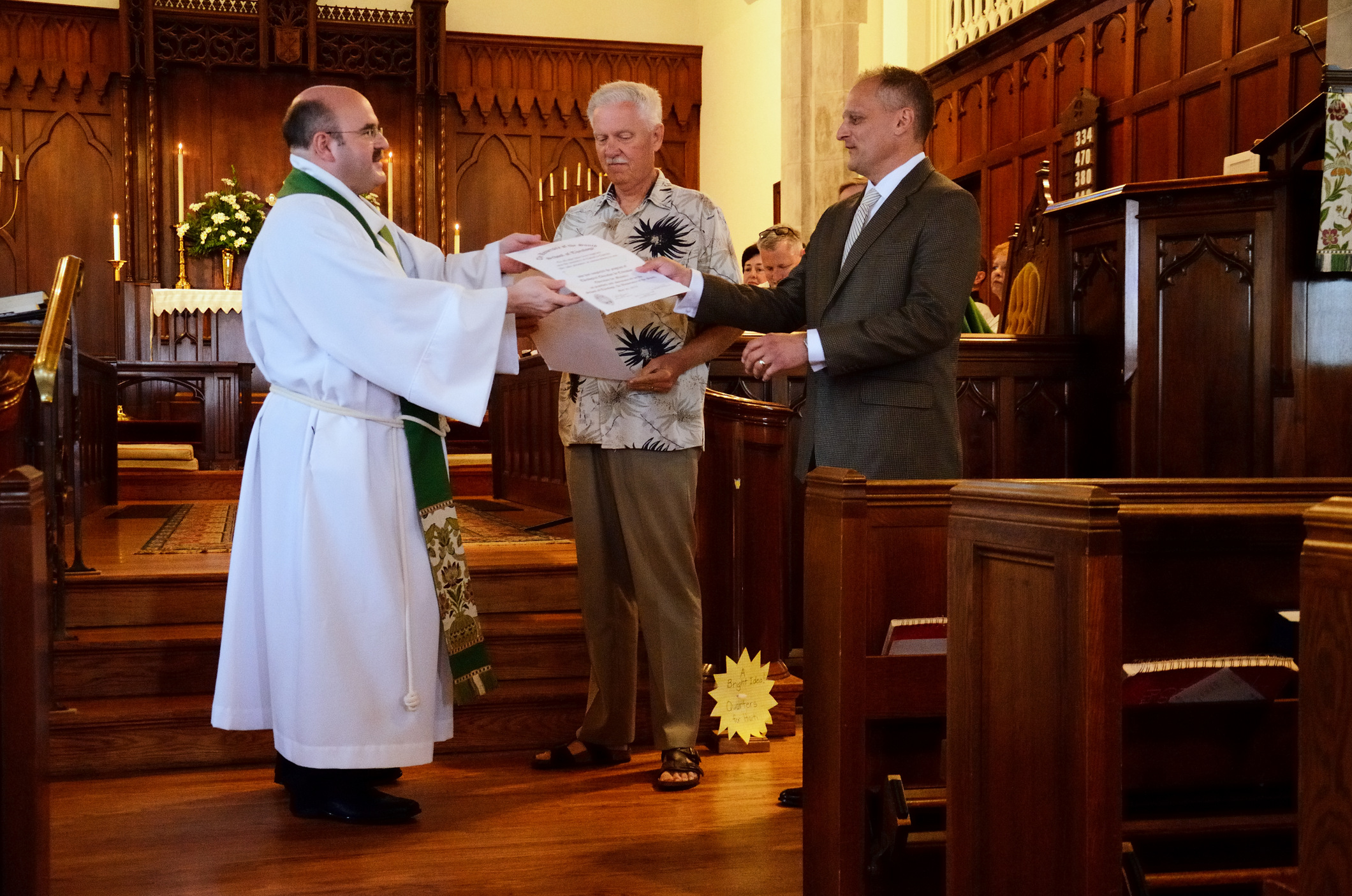 Apart from Lanie giving her stewardship talk, I was scheduled to usher at the 9 am service and I had a meeting between services at 10 am. I’m glad I had to be there for all three services as it meant I got to see my friends John and Kris receive their EfM certificates. Four years, all done.