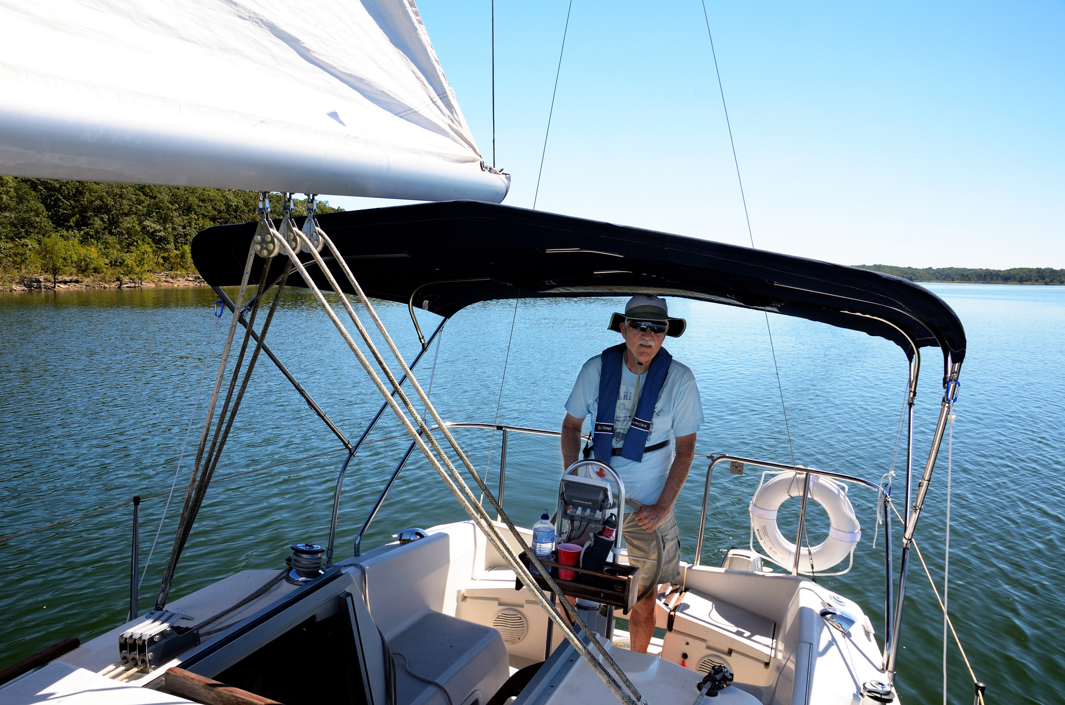 It was also hot – one of the hottest days of the year. Not bad for September. Needless to say, I no longer consider the Bimini a frivolous accessory. It was absolutely essential to stop us frying in the sun.