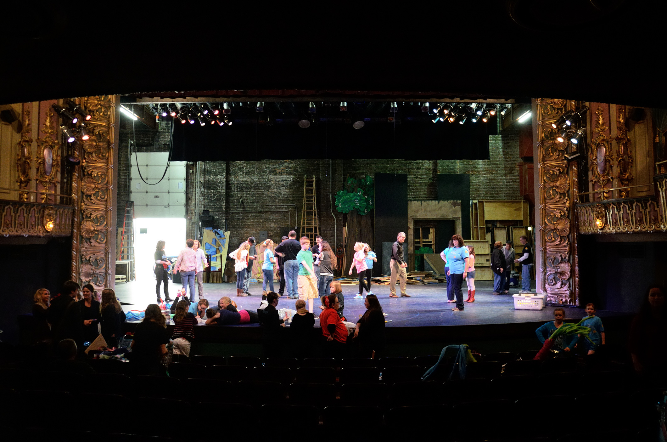 I don’t have a cordless drill (well not one that works – the batteries died) so I couldn’t join in all the manly the fun, so I stood and watched for a while, and then helped fold fabric and carry blocks of scenery down into the bowels of the theater where there’s a veritable emporium of strange things that might one day adorn the set of some play.