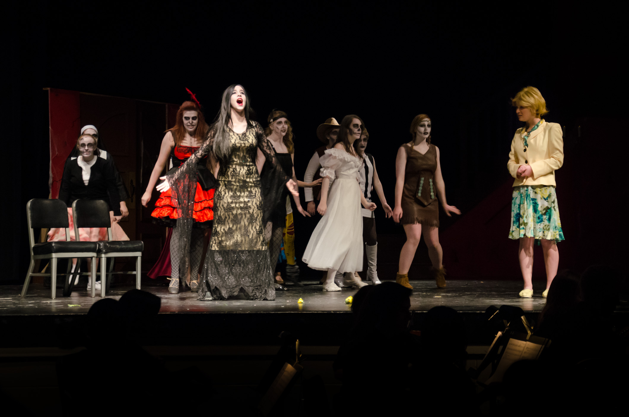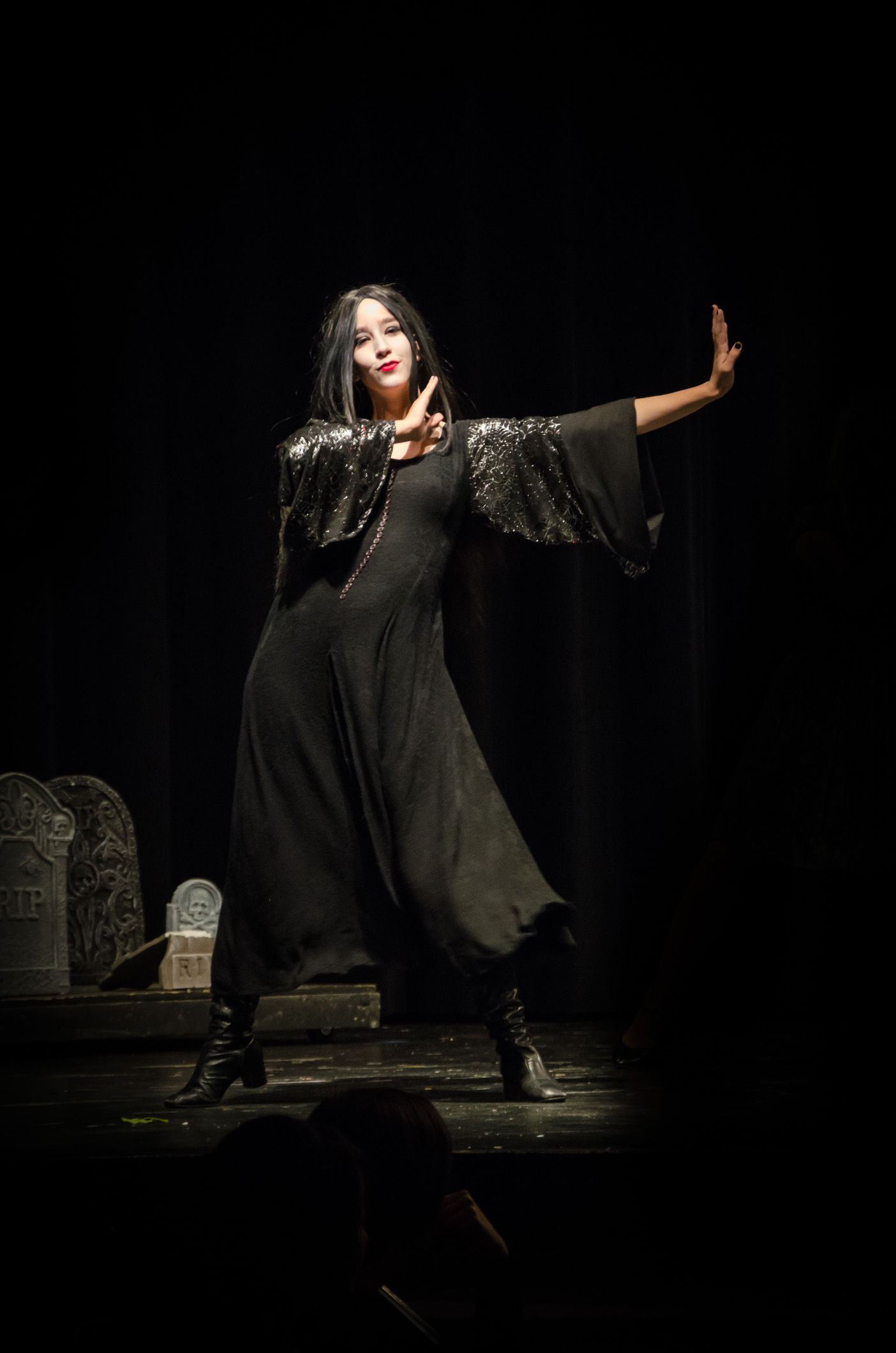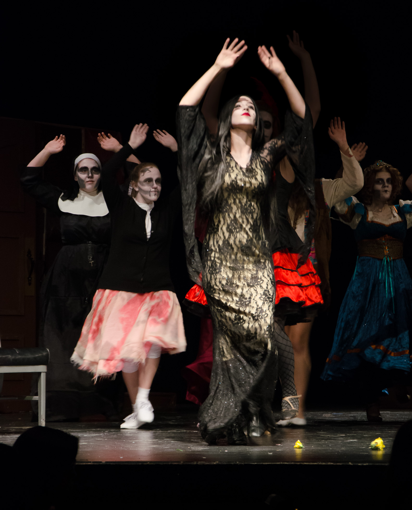 I’m really proud of Lanie. She did an absolutely fantastic job. Once again it was a cracking performance all round. They’ve been working on the show a couple of hours a night, four nights a week since early August. Lanie’s main role was as one of the ‘Ancestors’ – Cleopatra Addams, but tonight all the understudies had a chance to perform in their main roles. It was challenging as they’d not had a lot of opportunities to rehearse the roles, but they all did brilliantly.