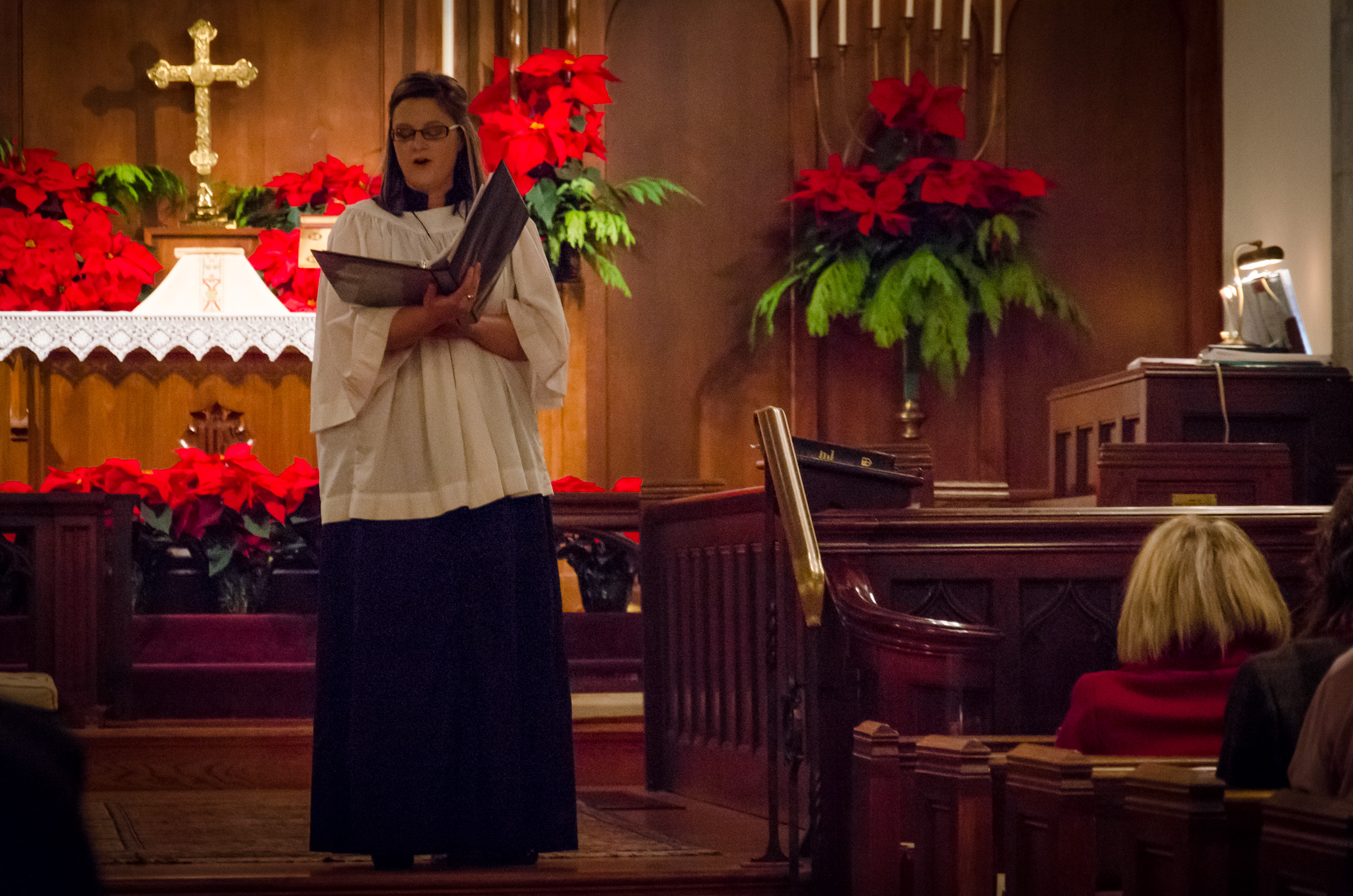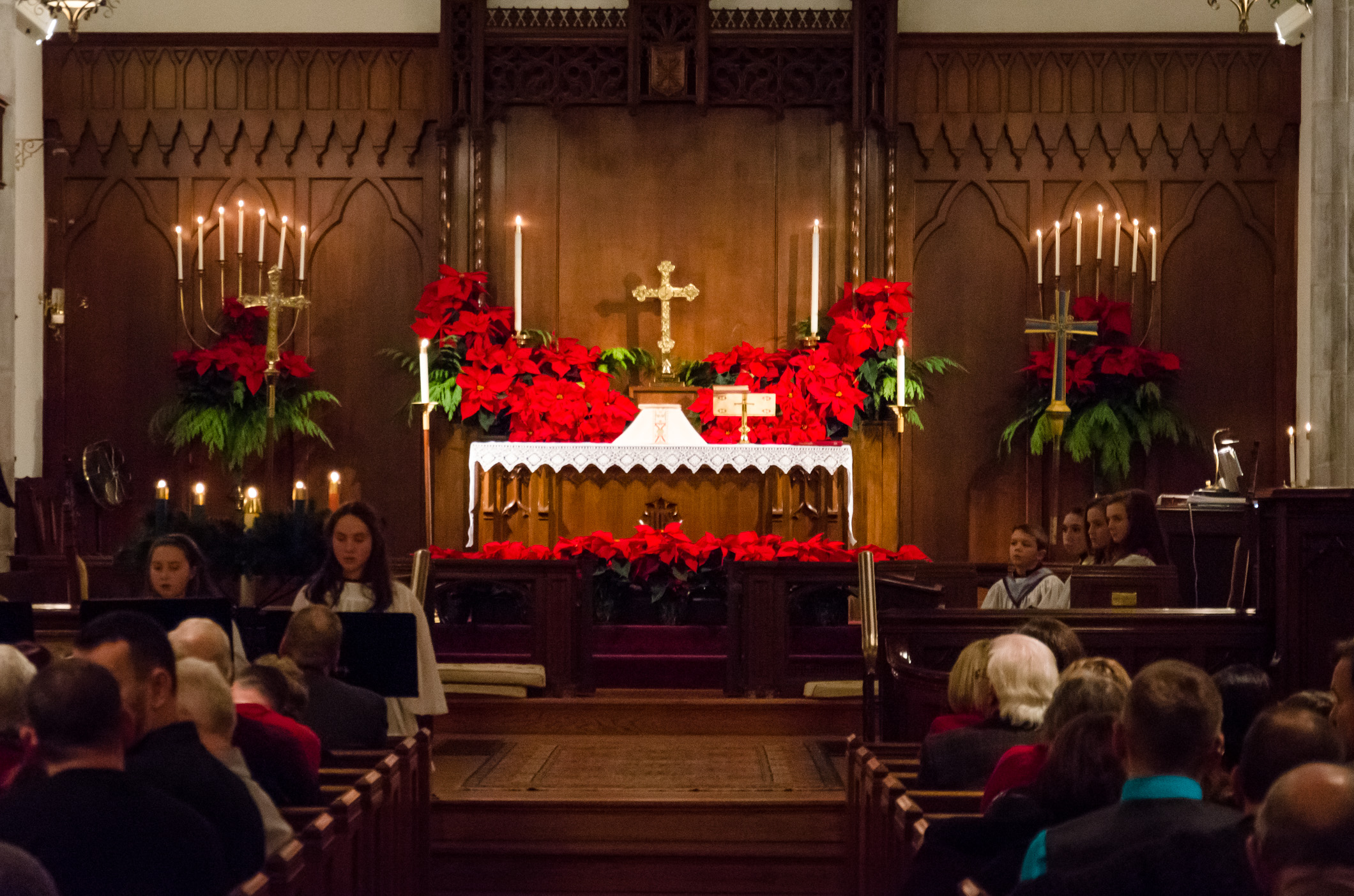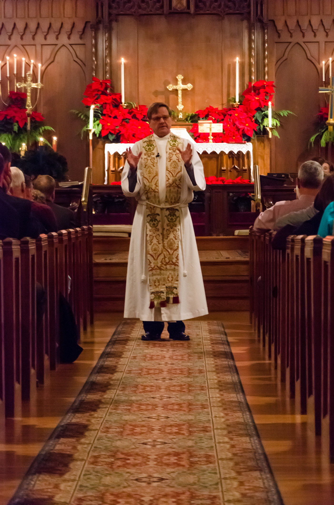 I also had a request from the Altar Guild to make sure I got a picture of the altar with all the poinsettias. Mark was too quick putting out the candles so I had to get him to re-light most of them…oops!