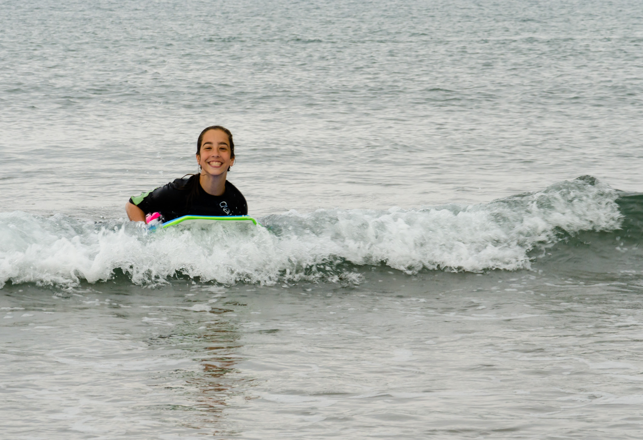 Lanie managed to persuade Ann to not only lend her a wet suit top and body board but, also to take her bodyboarding.