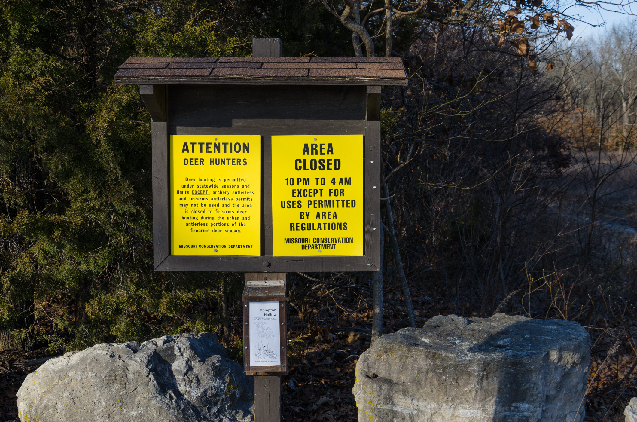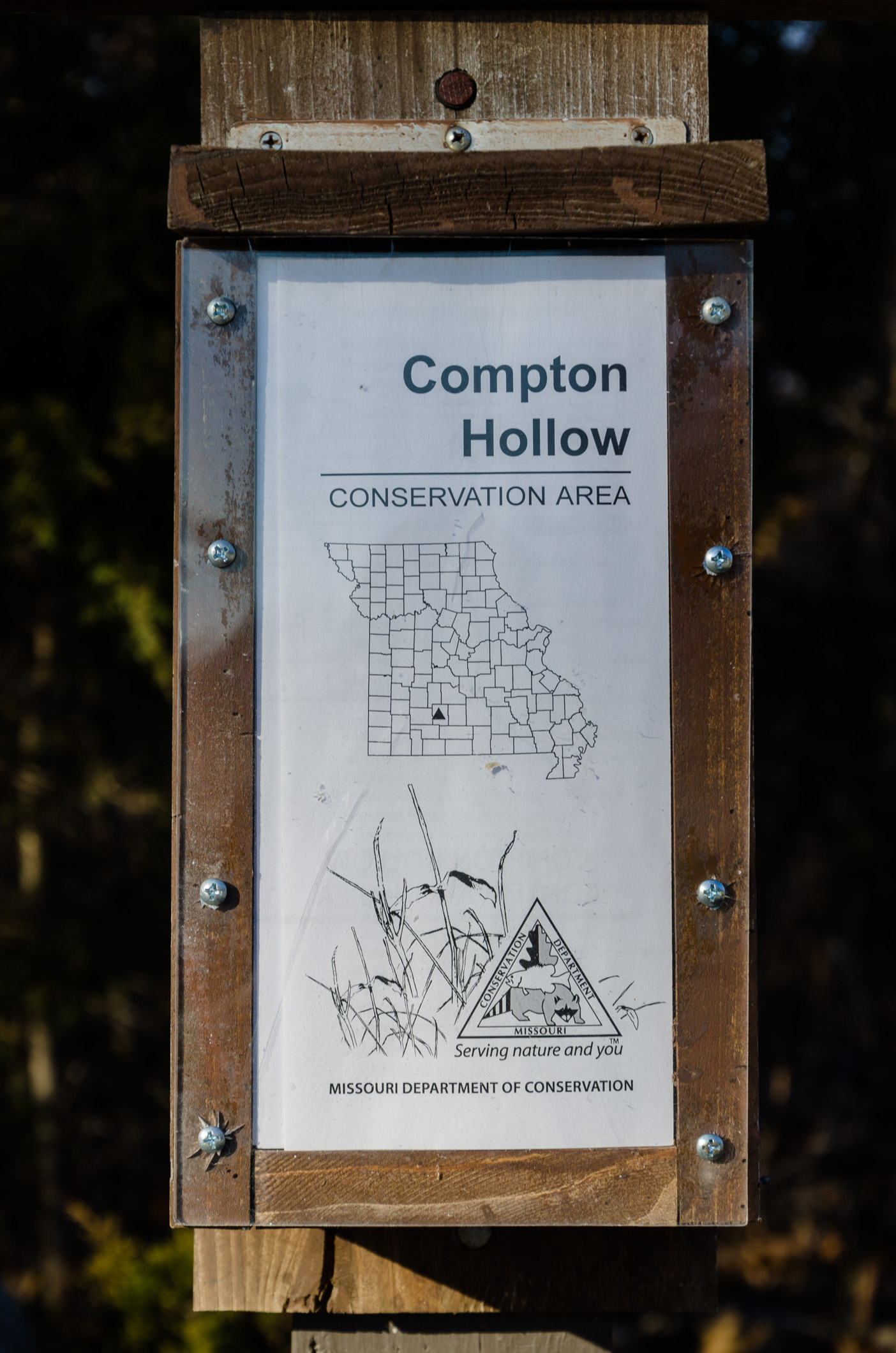 A forecast of 55°F, and the fact that we are both completely and utterly out of condition and in desperate need of the exercise prompted us to try and get out today. We picked an easy target, Compton Hollow Conservation Area, and went on a very straightforward hike of just over 2.6 miles and 400′ of elevation.
