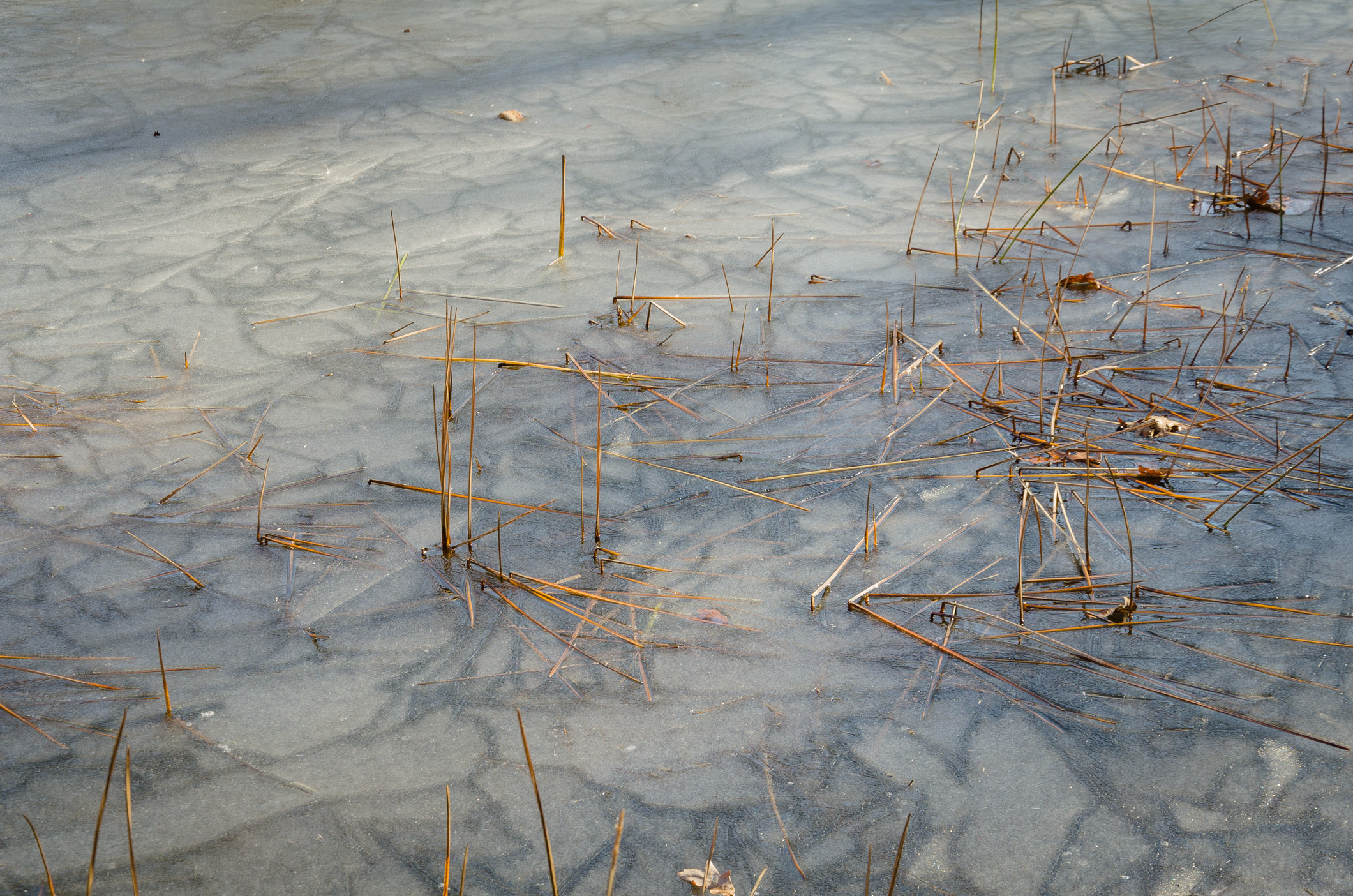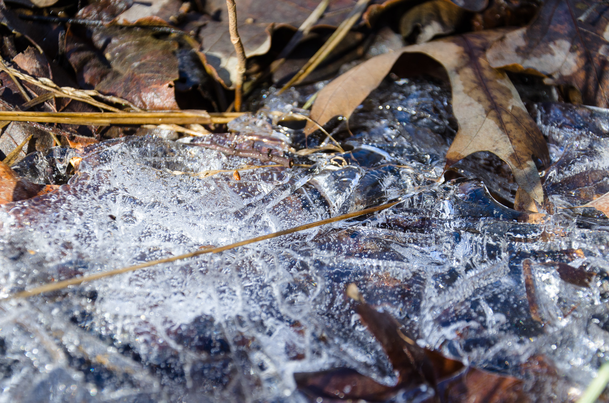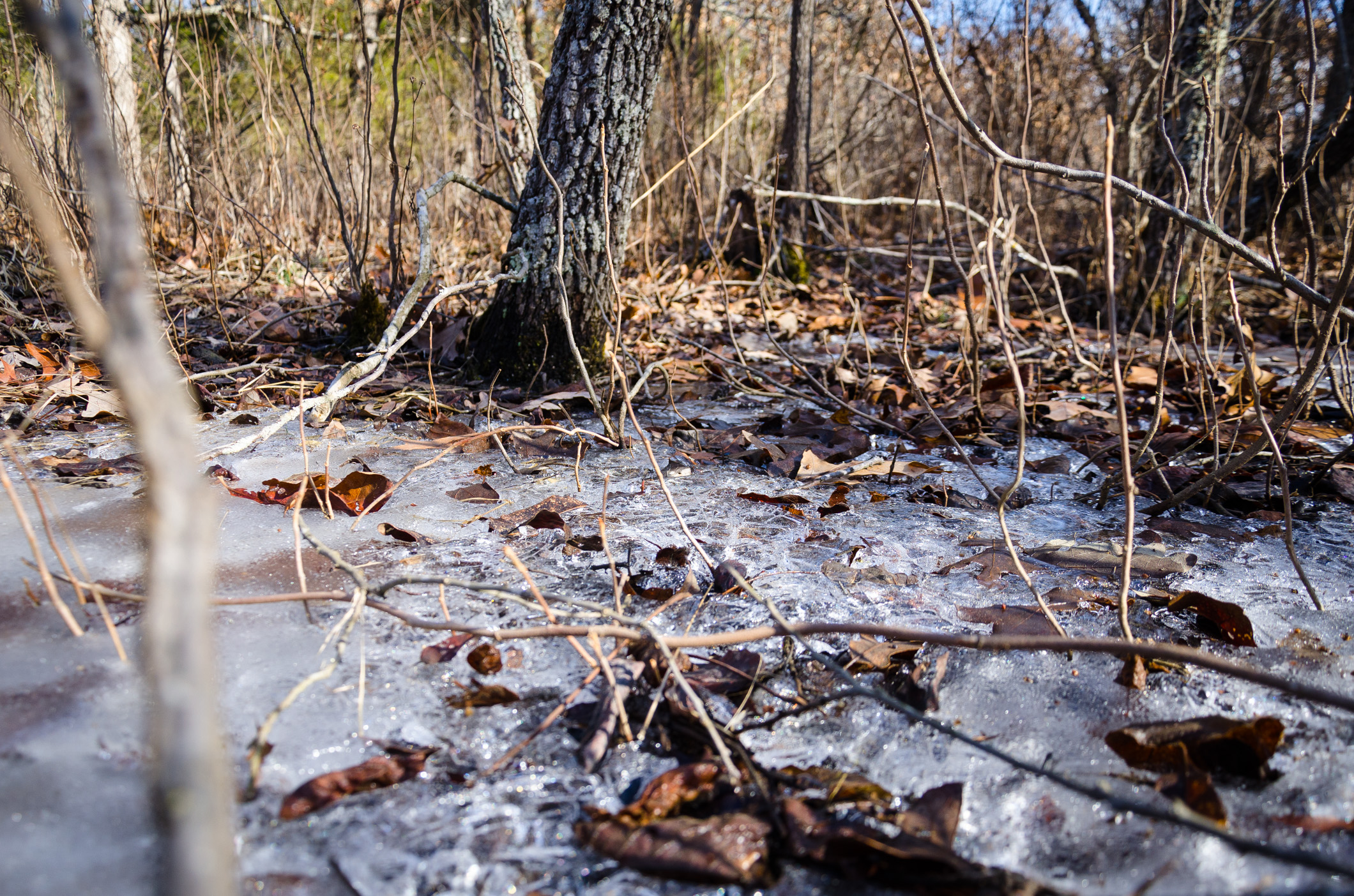 The going was as we expected, muddy. Unexpectedly there was still a lot of ice around in the shaded spots on the eastern side. I enjoyed it – especially squishing through the mud in my huaraches. Unfortunately, Ginger doesn’t like the mud and she soon found it a bit tiresome.
