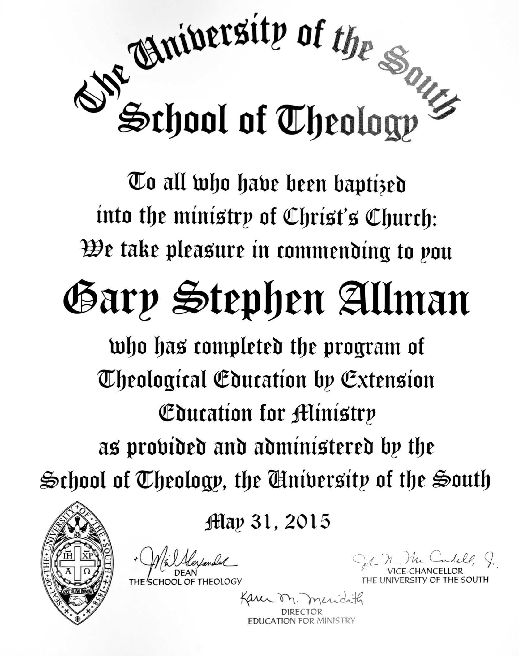 After four years of studying – which is around 400 hours of class attendance and over 600 hours of studying I’ve finally finished taking the Education for Ministry course. June 7, 2015