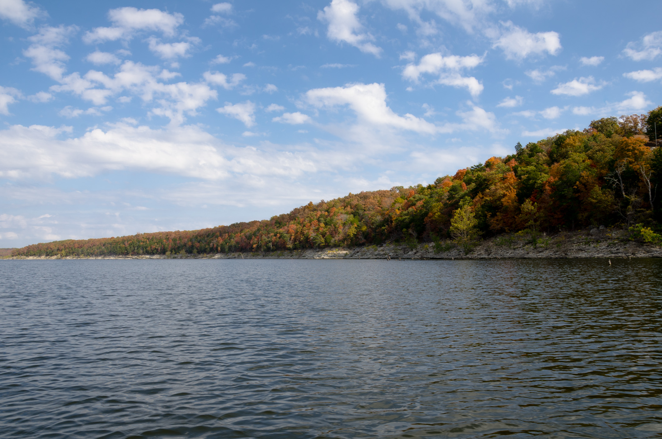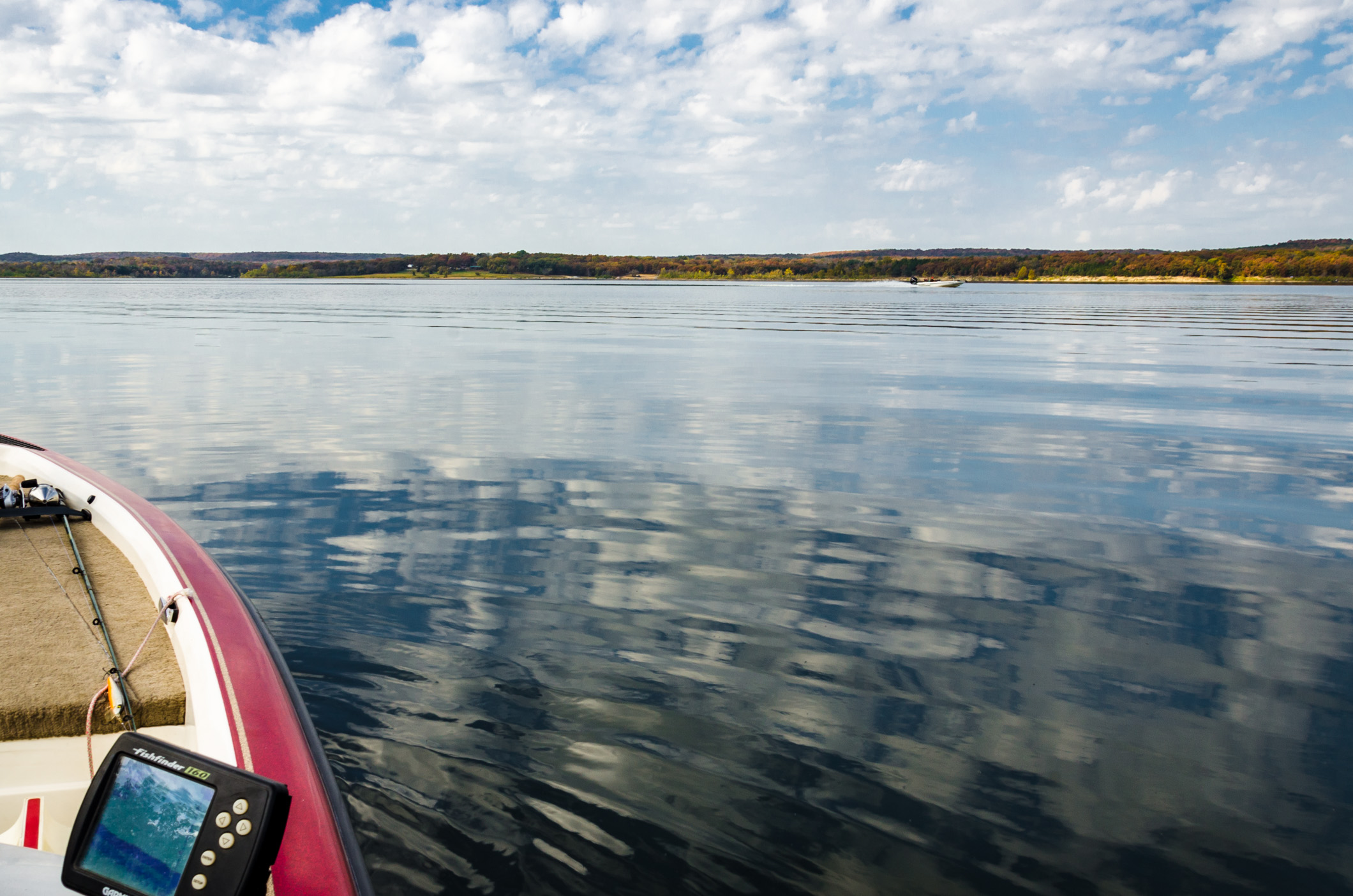 Yesterday I put in an eleven hour day to clear my essential work, leaving me free to go fishing today with Tom on Pomme de Terre Lake. I’ve not fished on Pomme de Terre before. I’d love to be able to report on the huge numbers of fish we caught. Unfortunately, we spent four hours out on the lake and caught nothing. Nada, nil, nowt. Not even a nibble. I did catch a good-sized (10-15lb) rock. Tom caught a submerged tree and lost a lure to it – so we agreed he had the best catch of the day.