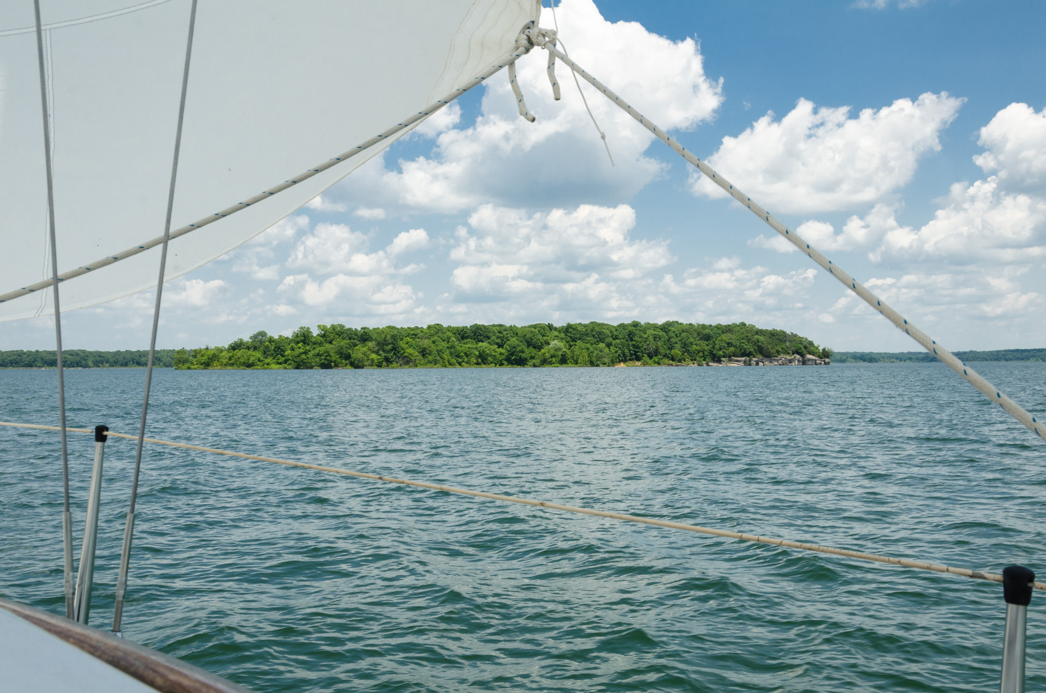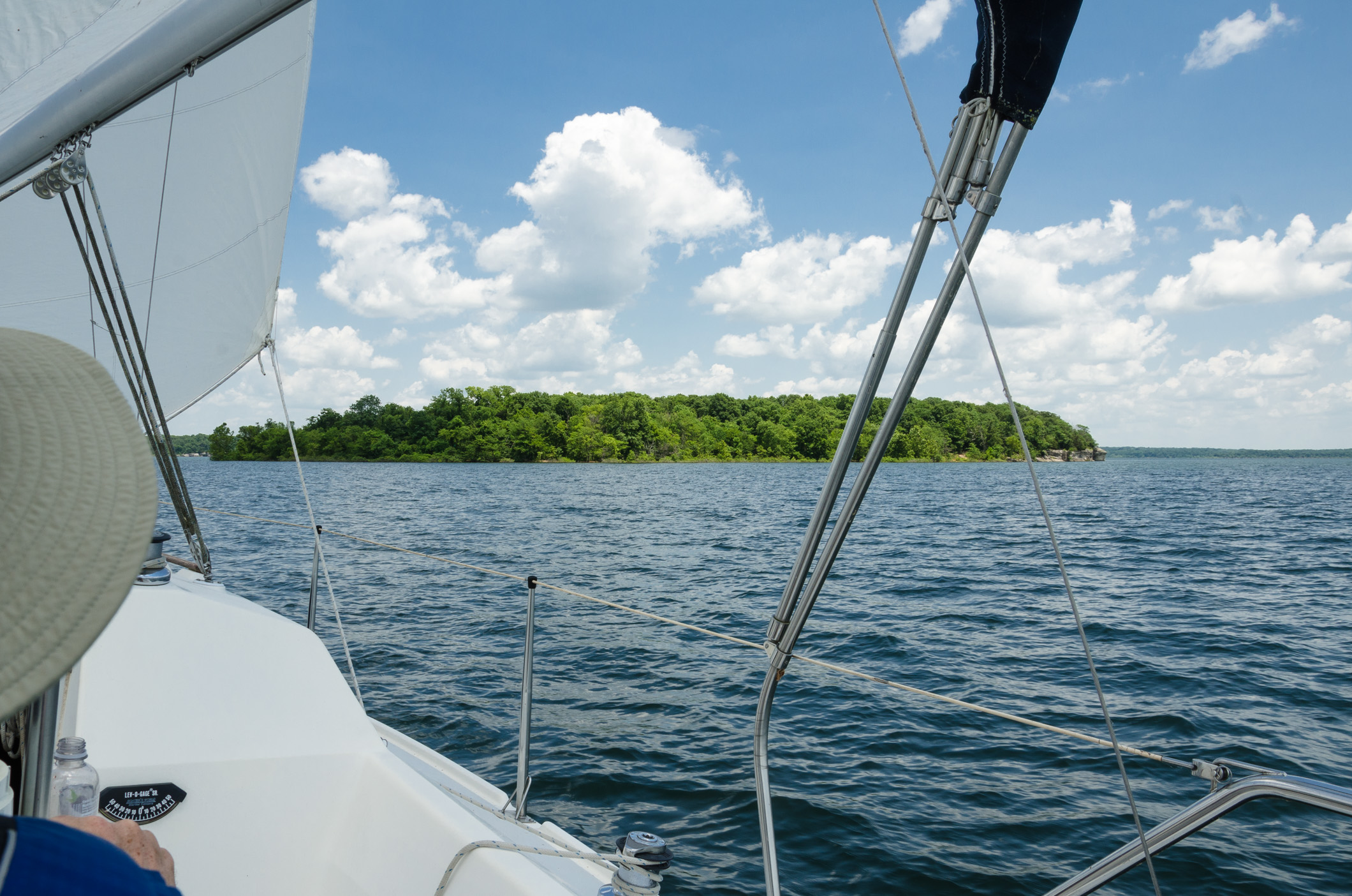 We had an excellent north west – north easterly wind at around 8-10 miles an hour. Just right for an easy beat up the lake. John was pleased to get up to Edge Island. Here we are passing the island going north.