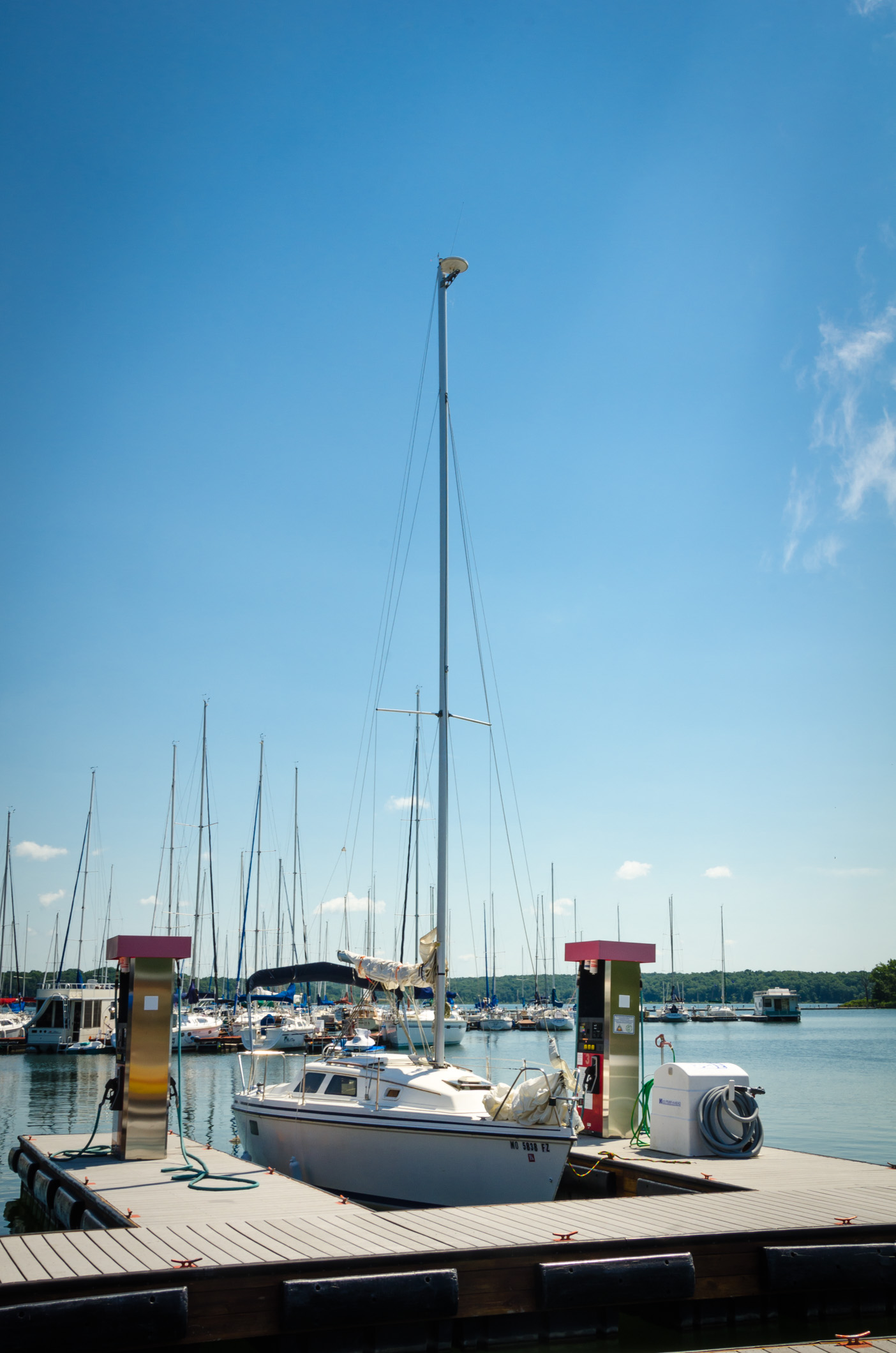 Washing out the water tank and wasp eviction complete, we motored over to the marina office where we pumped out the holding tank and filled up with gas. At last it was time for some sailing. Of course, it wouldn’t be sailing if something didn’t break or go wrong. Before we got out of the marina the engine quit and wouldn’t restart.