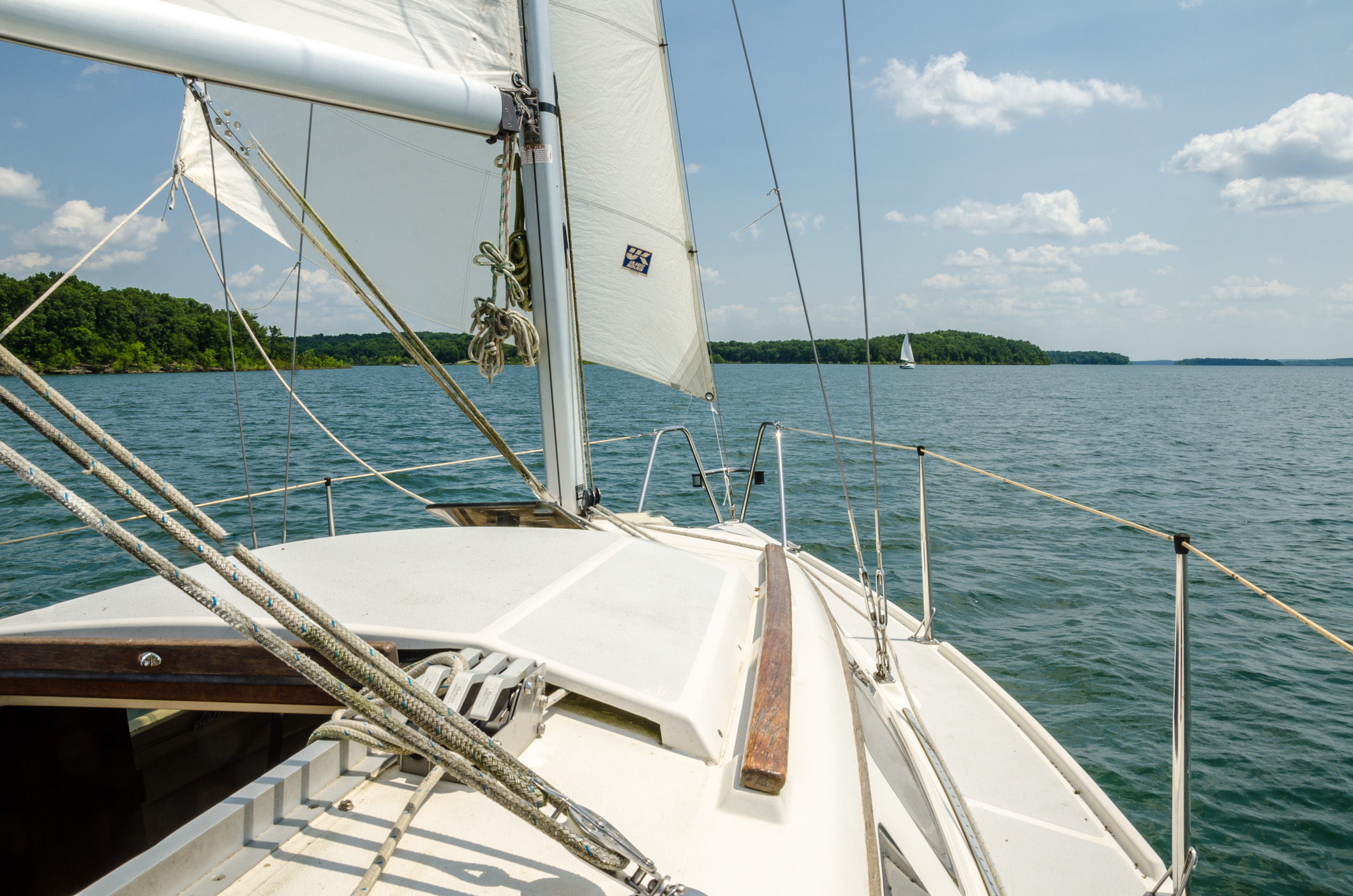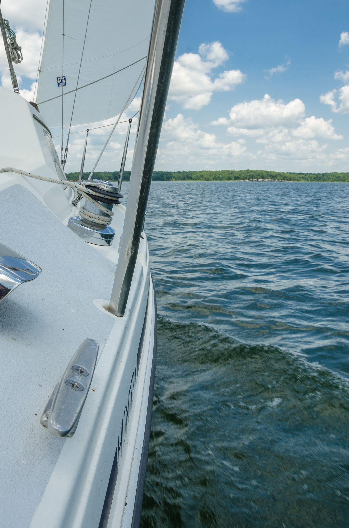 We had an excellent north-west – north-easterly wind at around 8-10 miles an hour. Just right for an easy beat up the lake almost all the way to the Dam. We were hardly foaming along but, compared to some of the windless days we’ve spent on Stockton, we were really moving.