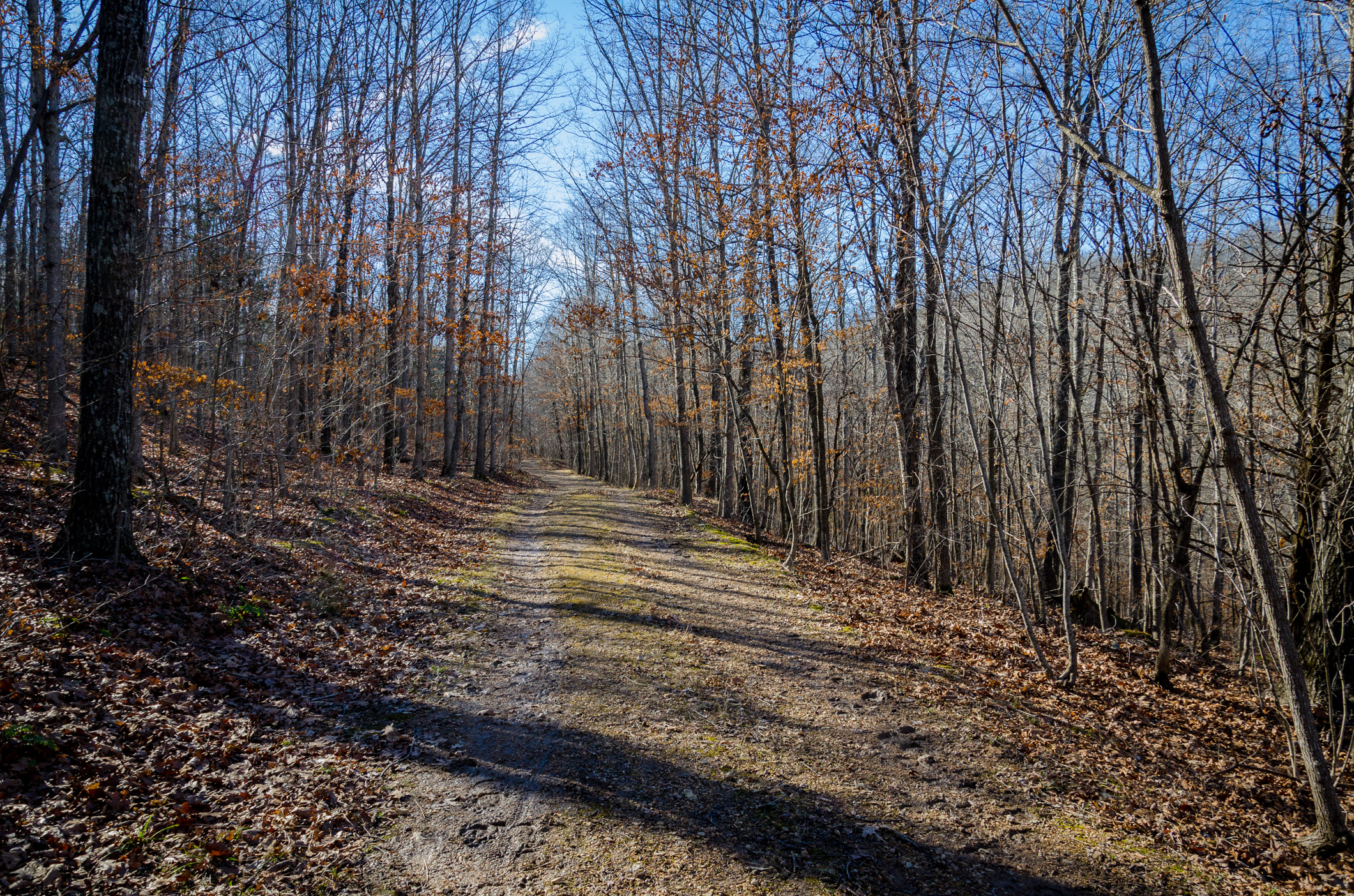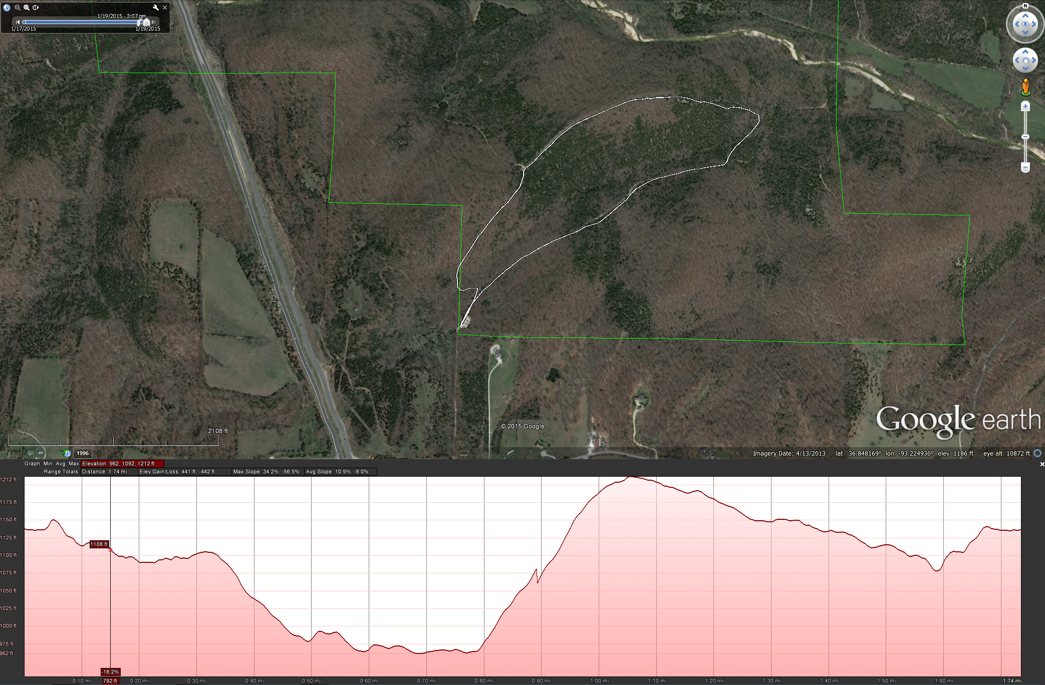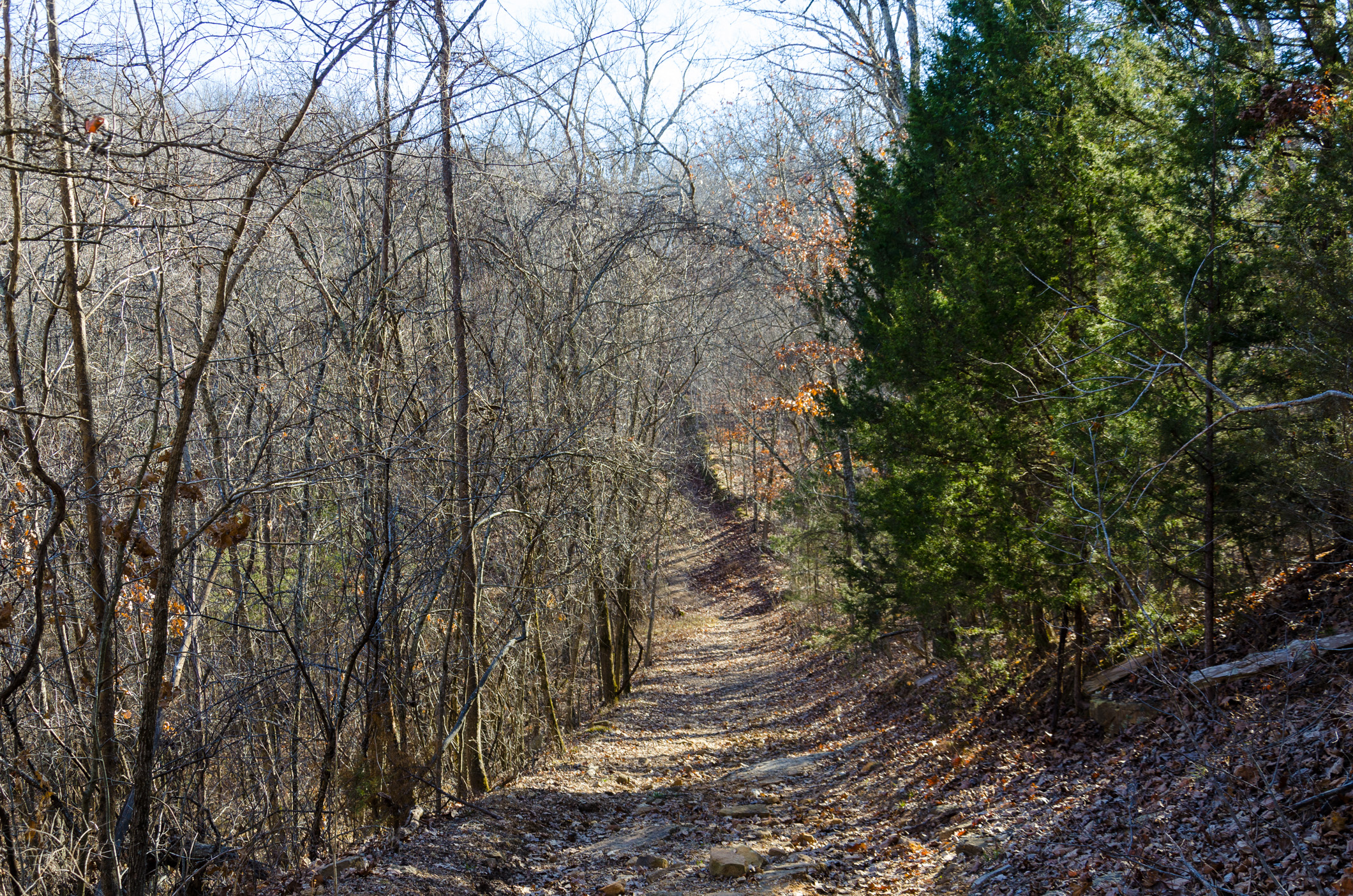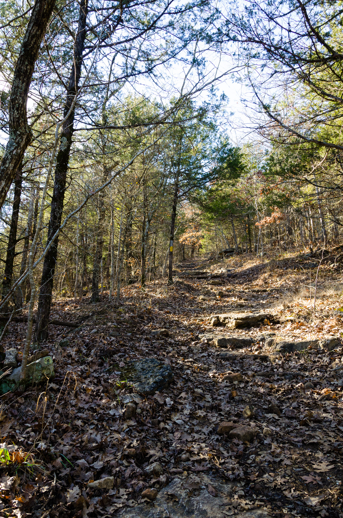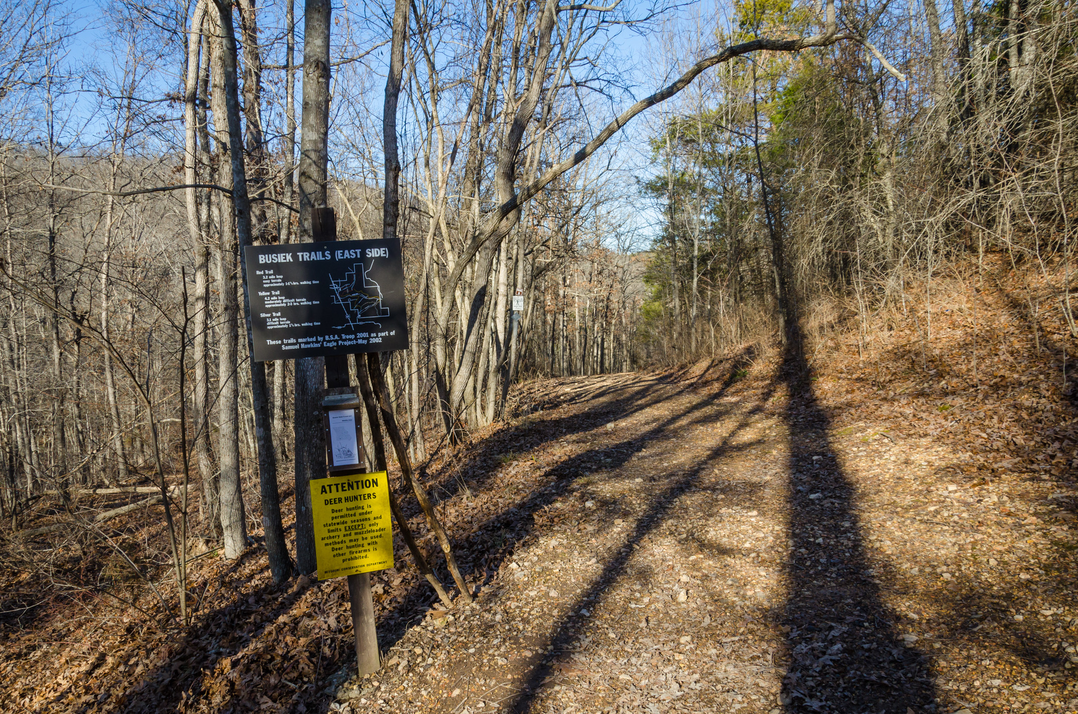 Ginger didn’t want a repeat of Saturday’s wet and muddy trail. We didn’t want anything too challenging either. And, we didn’t want to be out for too long. We decided to do a short and simple loop from the South Trail Head at Busiek. Short it was at 1.75 miles, though the 450′ of elevation descended and climbed had us breathless at times. Right now we just want to get back into the hiking habit and not try and do too much and end up with unnecessary injuries.