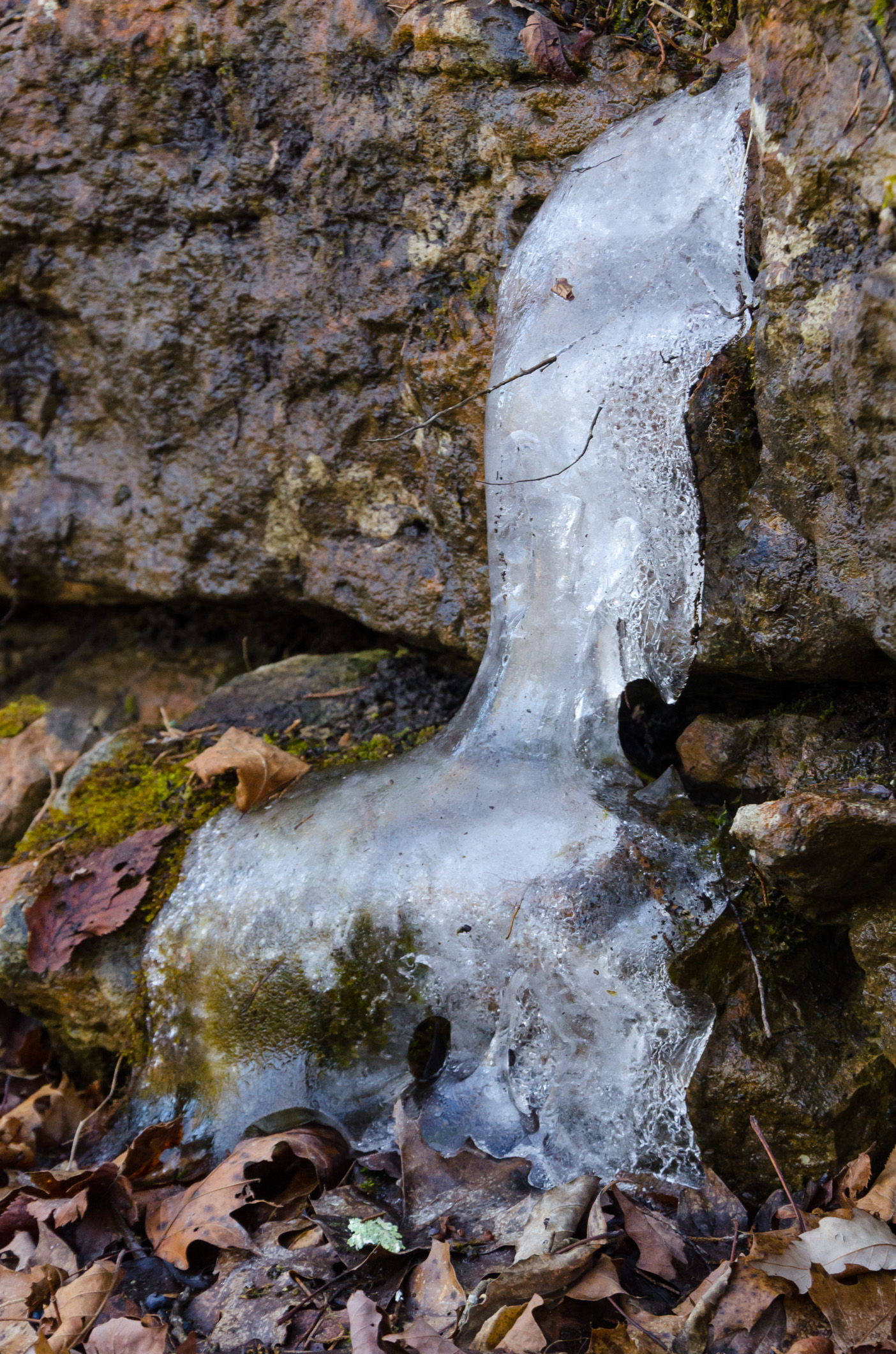 We were surprised to find ice both off and on the trail. The going was quite tricky in a couple of places with ice completely covering the trail. The melt water on top made it particularly slippery.