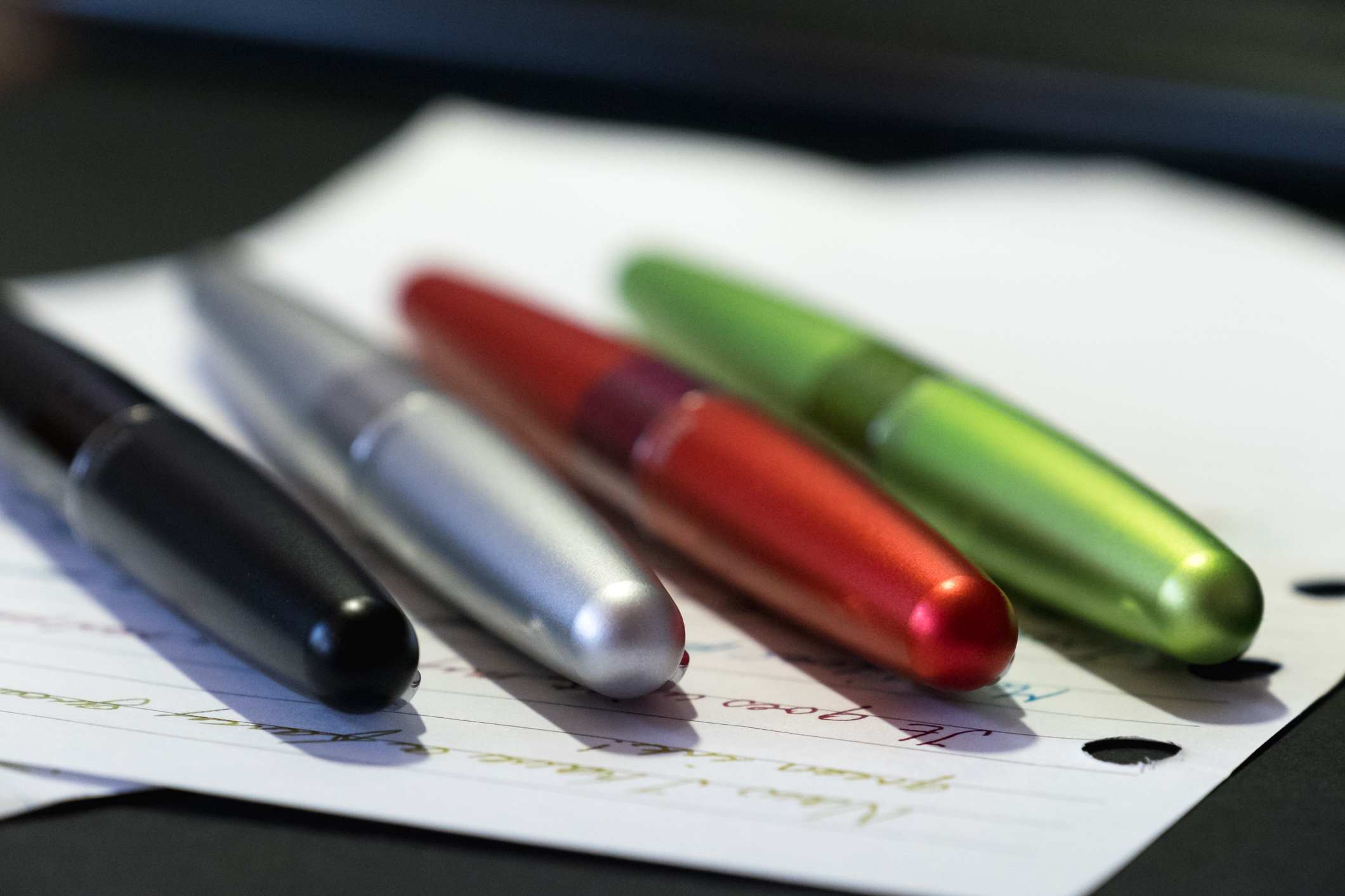 Four colored Pilot Metropolitan Fountain Pens