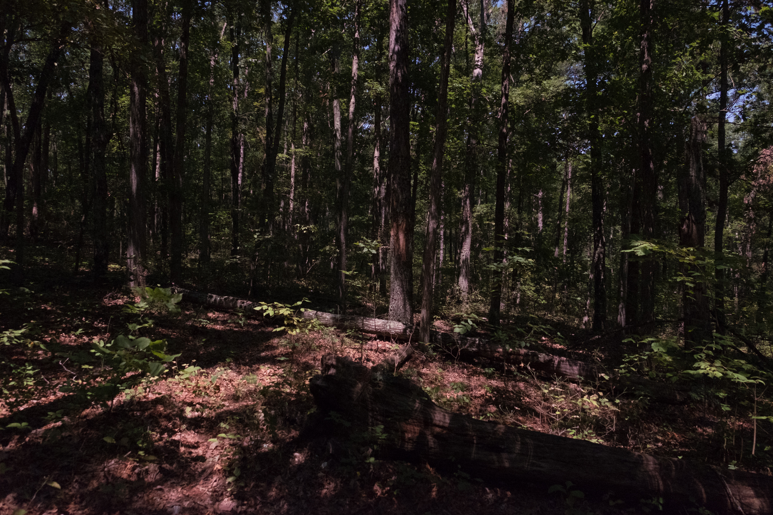 My plan to follow one of the creeks off trail didn’t work out, as in reality the hollows were too narrow and there was little to no water in the creeks either. The trail seems to have been re-routed since our first trip, and we never encountered the creek crossing I was looking for.