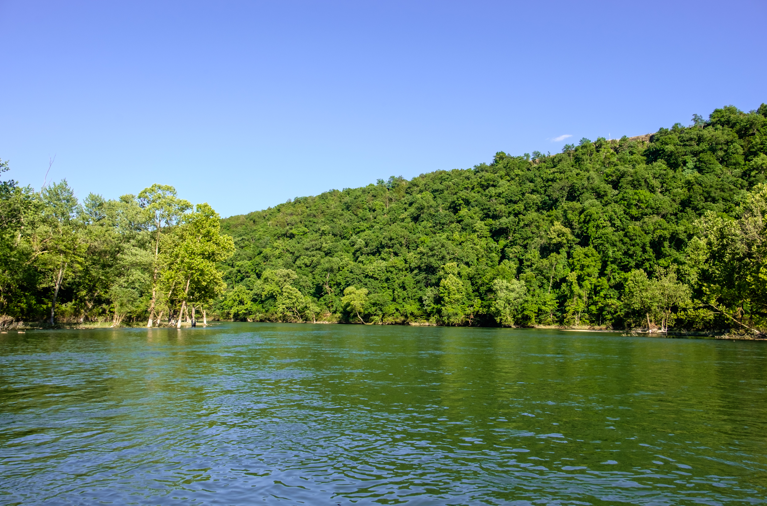 The Table Rock dam at Branson was letting a lot of water through, which meant the lake was quite high and the water running fast – not good conditions for fly fishing. However, I wasn’t here to catch fish, I was here to learn how to do it. After a couple of disastrous attempts at fishing with a bait caster, I thought fly fishing was going to be beyond me. Fortunately, that was not the case after several hours of practice I could almost get the line to go where I wanted it. We spent most of our time in a backwater tied to a stump, which promptly broke loose as I unfastened the boat. If it had broken loose earlier it could have made for a fun few minutes. leaving our sheltered spot we managed to get the boat swept onto a tree, damaging the front running light. Oops! Did I mention that the water was running fast?
