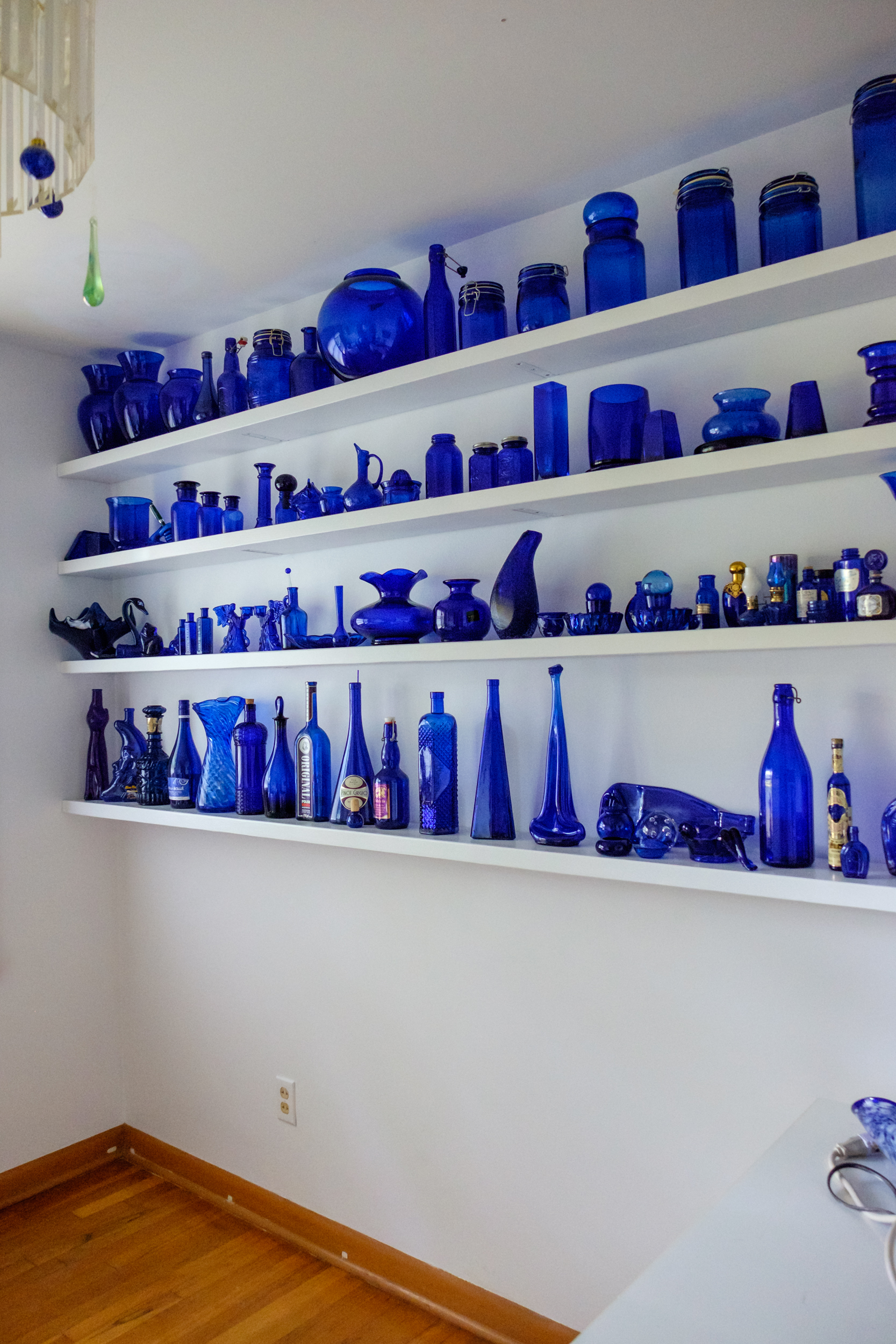 Now the blue glass has been moved from where it was being stored in the garage, my next task is to tackle the garage’s disorganized storage area (or phase IV of the garage remodel, as it might be called. I finished phase III in June 2010, so that’s long overdue too!).