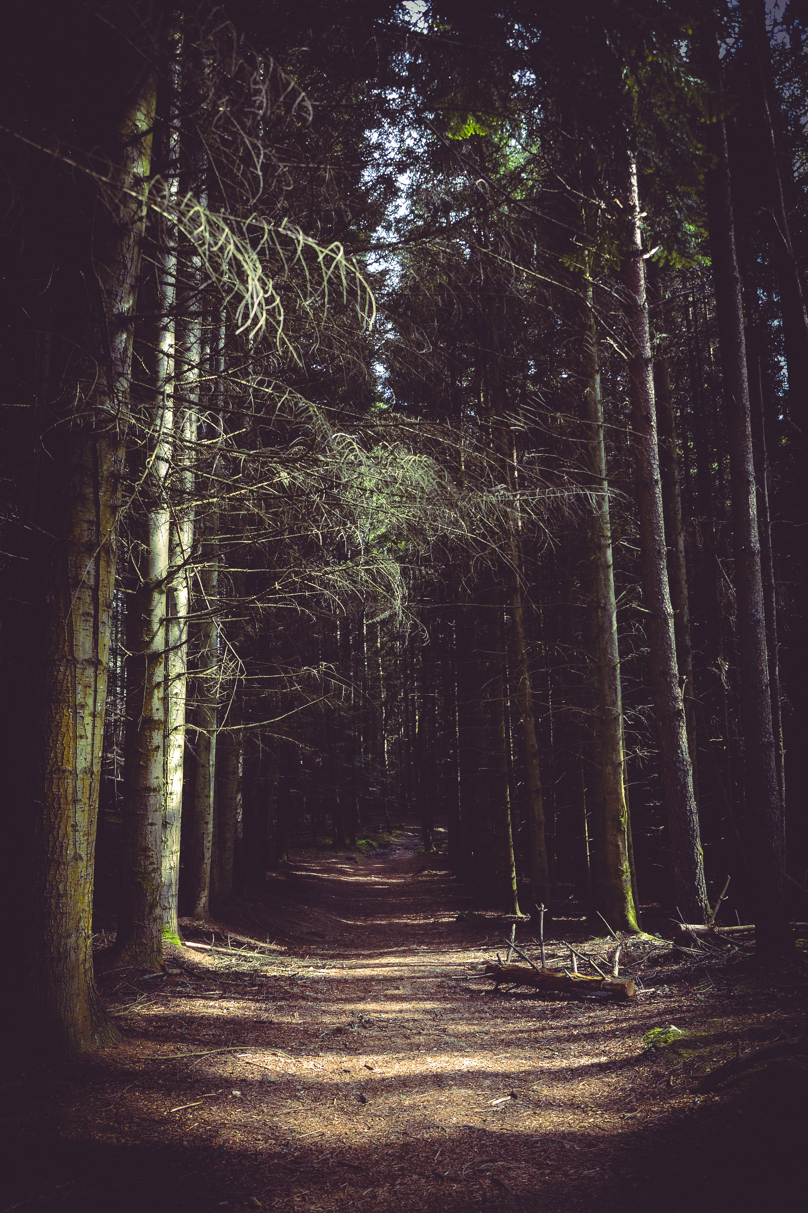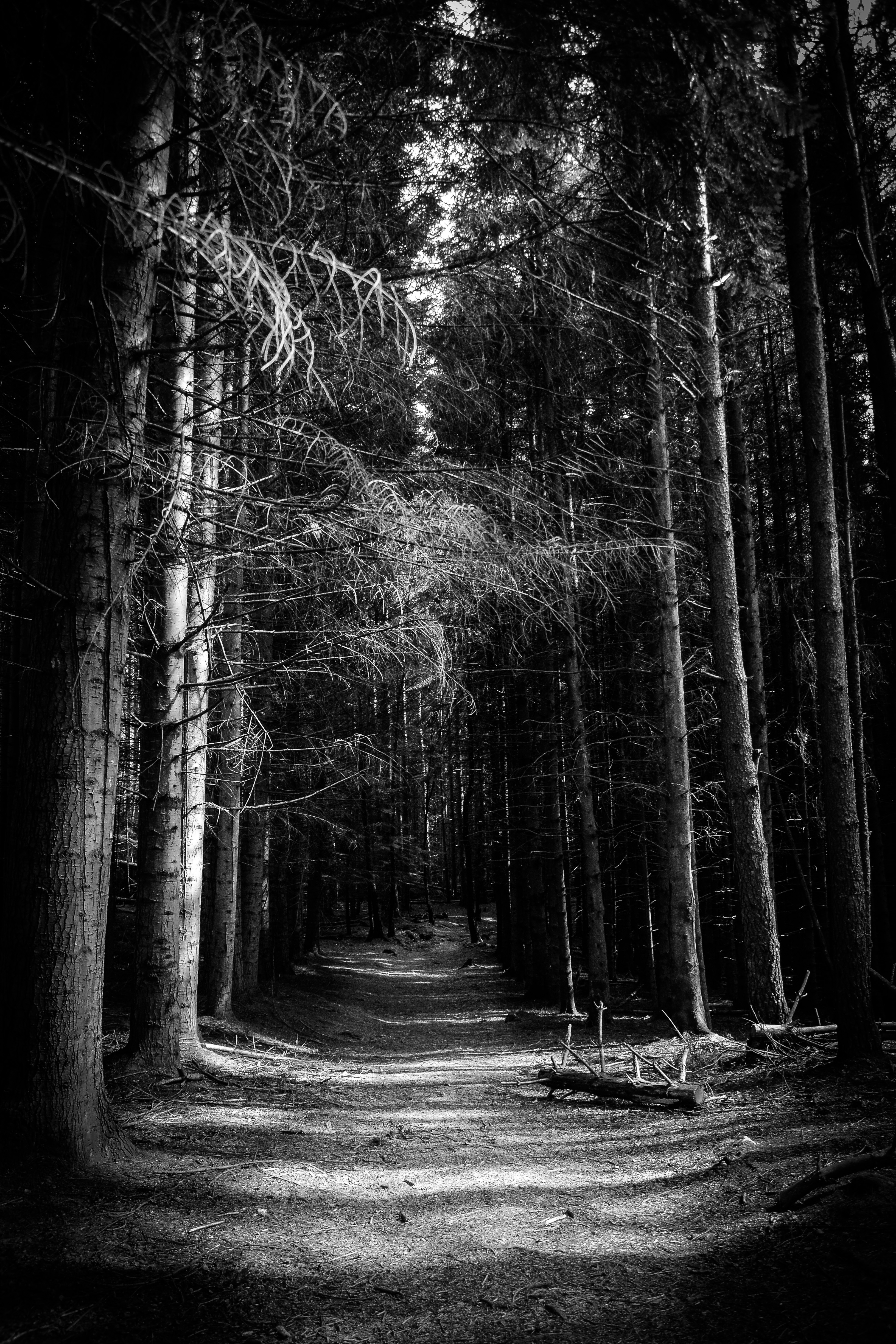 And the original is very different. Among other things, I lightened the trail to reinforce the visual path between the trees and darkened the edges to draw the eye to the center and make it more sinister.