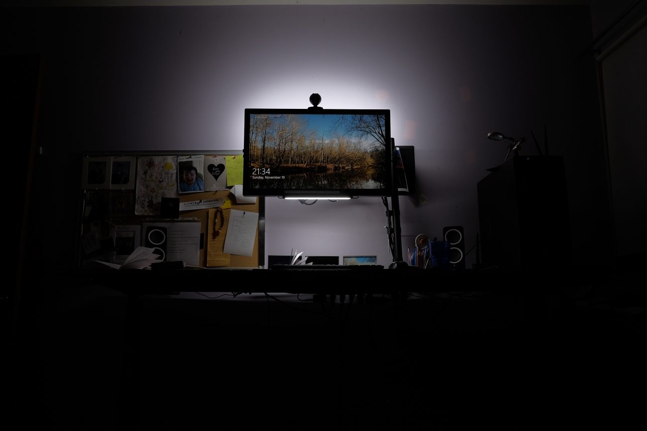 - PC. I’d rather not have the PC on the desk, but it is a standing desk, and the computer needs to go up and down with it. At some point I may suspend the computer underneath, but I am not keen on dealing with limited access. One could argue that access to the innards of the machine is not needed very often and my experience tends to agree. But, when I need to get inside it’s typically a hardware emergency, and I won’t want to waste time unstrapping it from a sling.