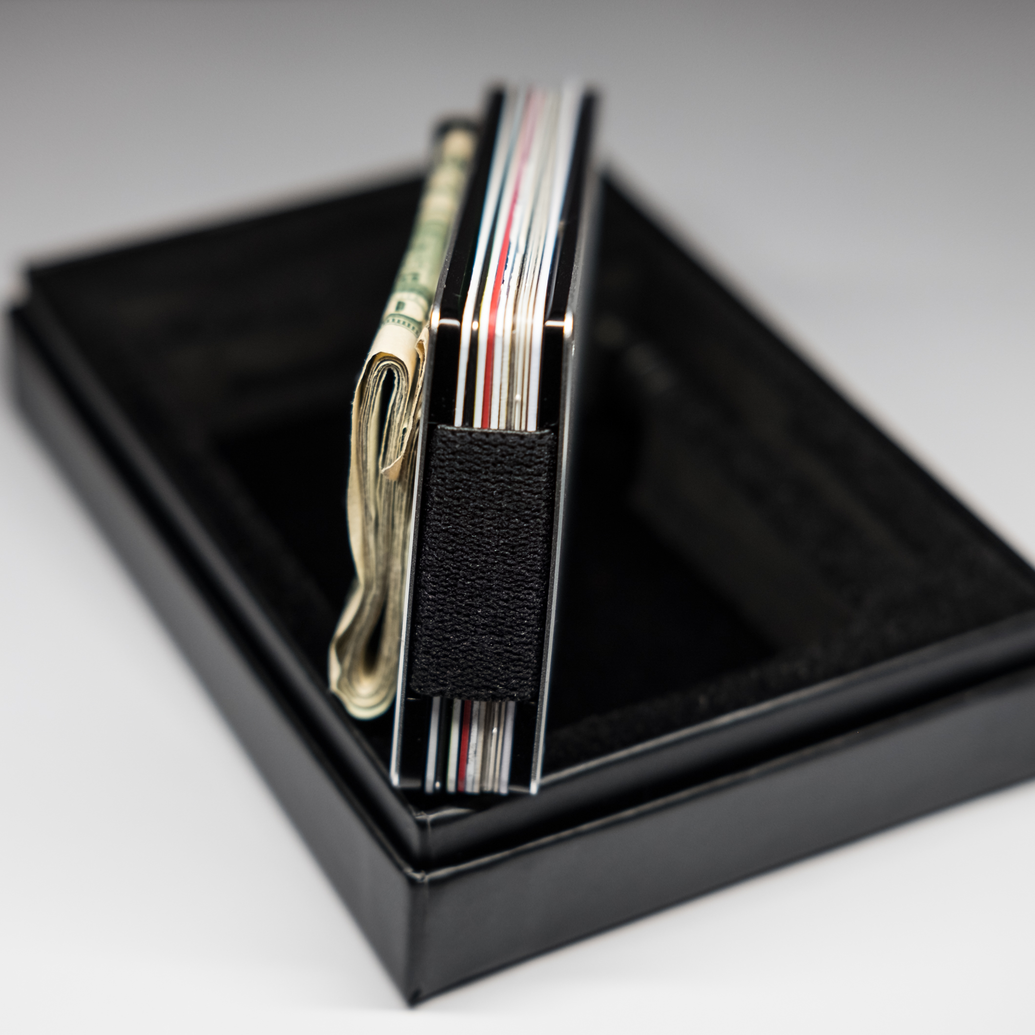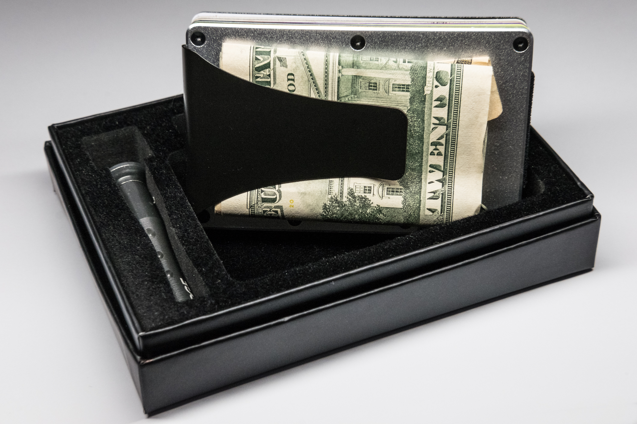 There are several different finishes to choose from. As much as I liked the look of the burnt titanium finish, I couldn’t justify the cost, so I bought a wallet with an aluminum finish that closely matches the look of my favorite Zippo lighter.
