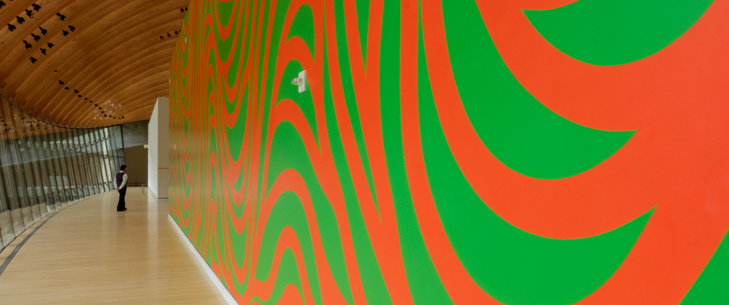 Wall Drawing #880: Loopy Doopy (orange and green). Artist: Sol LeWitt (1928 – 2007). Crystal Bridges Museum of American Art.