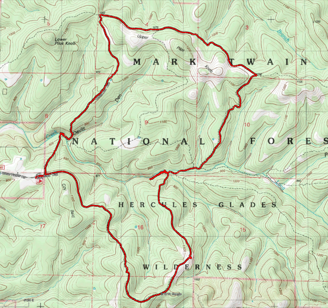 Ginger was very busy (she has a new ebook on the way and is obviously much more conscientious than I am) so it will be another solo hike. I didn’t fancy fighting with a massive tangle of snakey undergrowth, so Piney Creek was not an option. I wanted to get a few more miles under my belt on this trip, so I decided to stick with Hercules Glades, starting at Coy Bald, heading north to the Pilots, and then taking the Tower Trail East, before heading south down the Middle Trail to the Falls. I’d spend the night nearby and hike back via the Coy Bald Trail. Ten miles and a few reasonable climbs. The only problems I could think of were weather-based. A sudden storm (and we’ve been having a lot of them) could make the ford on the approach to the Coy Bald Trailhead impassable, and if Long Creek was running high I might have problems crossing it. So my backup plan was to either go in via the Blair Ridge Trailhead or (more likely) the further away Tower Trailhead. From either, I should still be able to fit in a nice 10-mile hike.