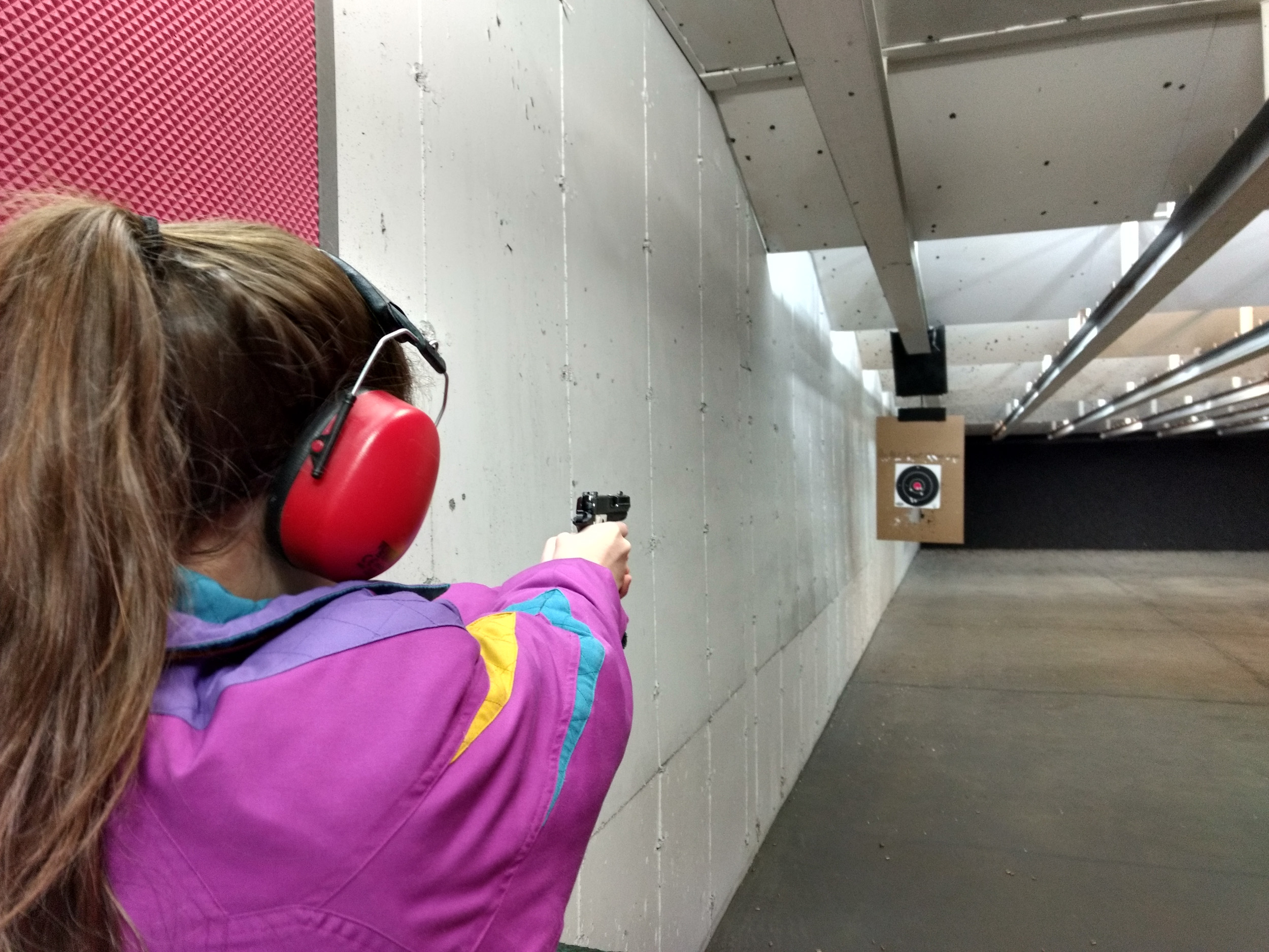 Lanie’s grandparents have a farm, so she’s familiar with rifles and shotguns, but, she’s just never fired a handgun. We’ve tried to ensure that the kids have a broad range of basic skills, and the safe handling and use of firearms is one of those skills I firmly believe they should all have. So in the course of the afternoon, we went through all the safety drills, and Lanie was particularly interested in why I have a gun, given that they aren’t available in the UK (they were a lot more available when I was a kid as I noted here). At the range I tried out Katie’s gun first — bullseye first (or second) shot, you’ve got to like a gun that enables you to do that. I then put a single round in it for Lanie. She hit the target and thought it was great. I slowly built up the number of rounds, and then let her load and fire as she wanted. She was getting very good groups and bullseyes, probably out-shooting me. As it turned out, I was right about the slide, it did fail to lock back on at least one occasion, but not all the time, so it’s probably not worth replacing the slide-lock spring right now.