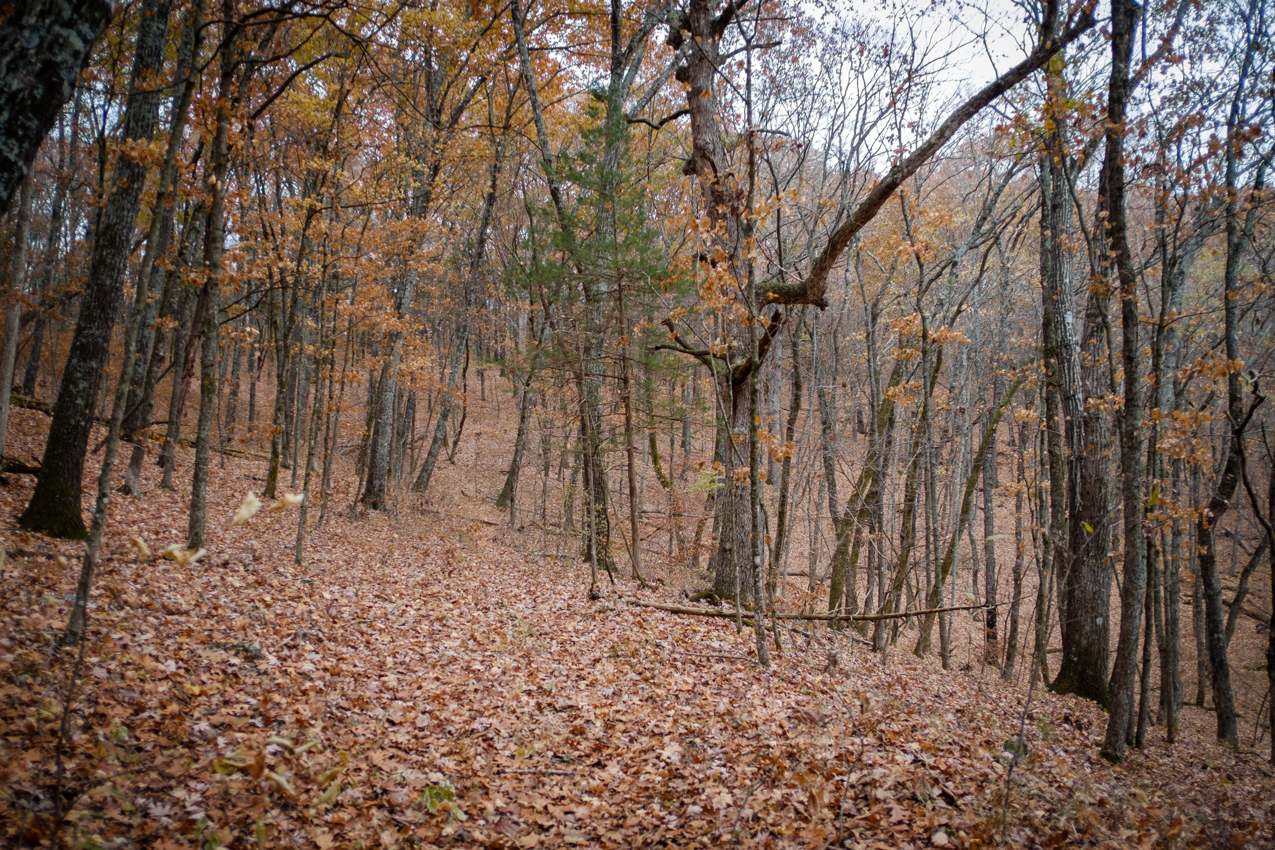 The Tower (Pilot) Trail was another uphill hike. I thought I’d got to the Pees Hollow Trail and was disappointed to find that I was mistaken and I still had a fair way to go. Once I got to the real Pees Hollow trail, I headed down the ridge. The whole area was heavily covered in leaves and I immediately lost the trail in the leaf litter. At this point that is not much of problem as the trail runs down the ridge, so all I did was head down the ridge until the trail became obvious.