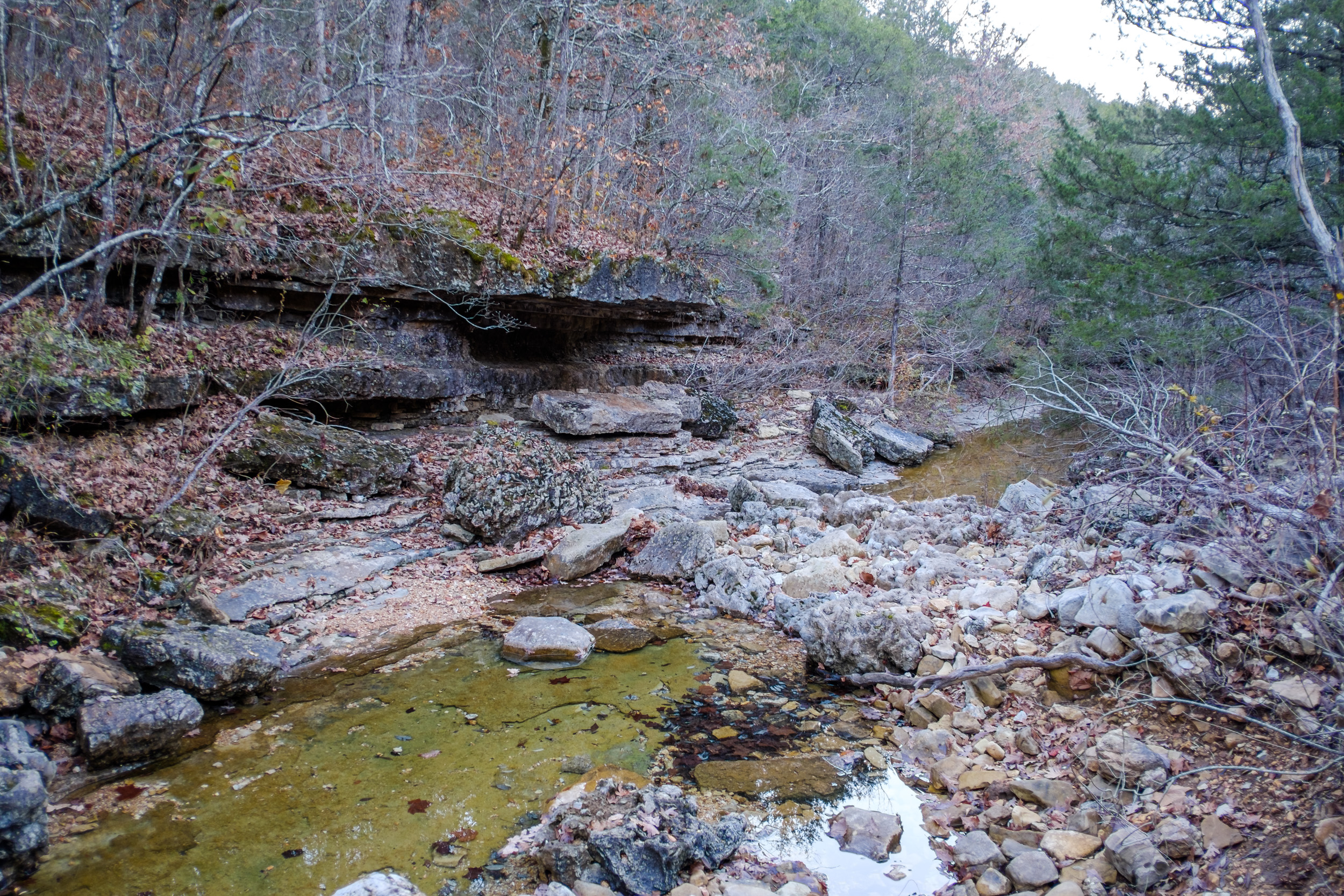As I had started late, I was rethinking my plan to hike around five miles today. With stops for pictures and exploring, I typically average 1.1 miles an hour. Sunset was around 5 p.m. (and probably earlier behind the hills and in the hollows). I wanted to be camped well before it got dark.
