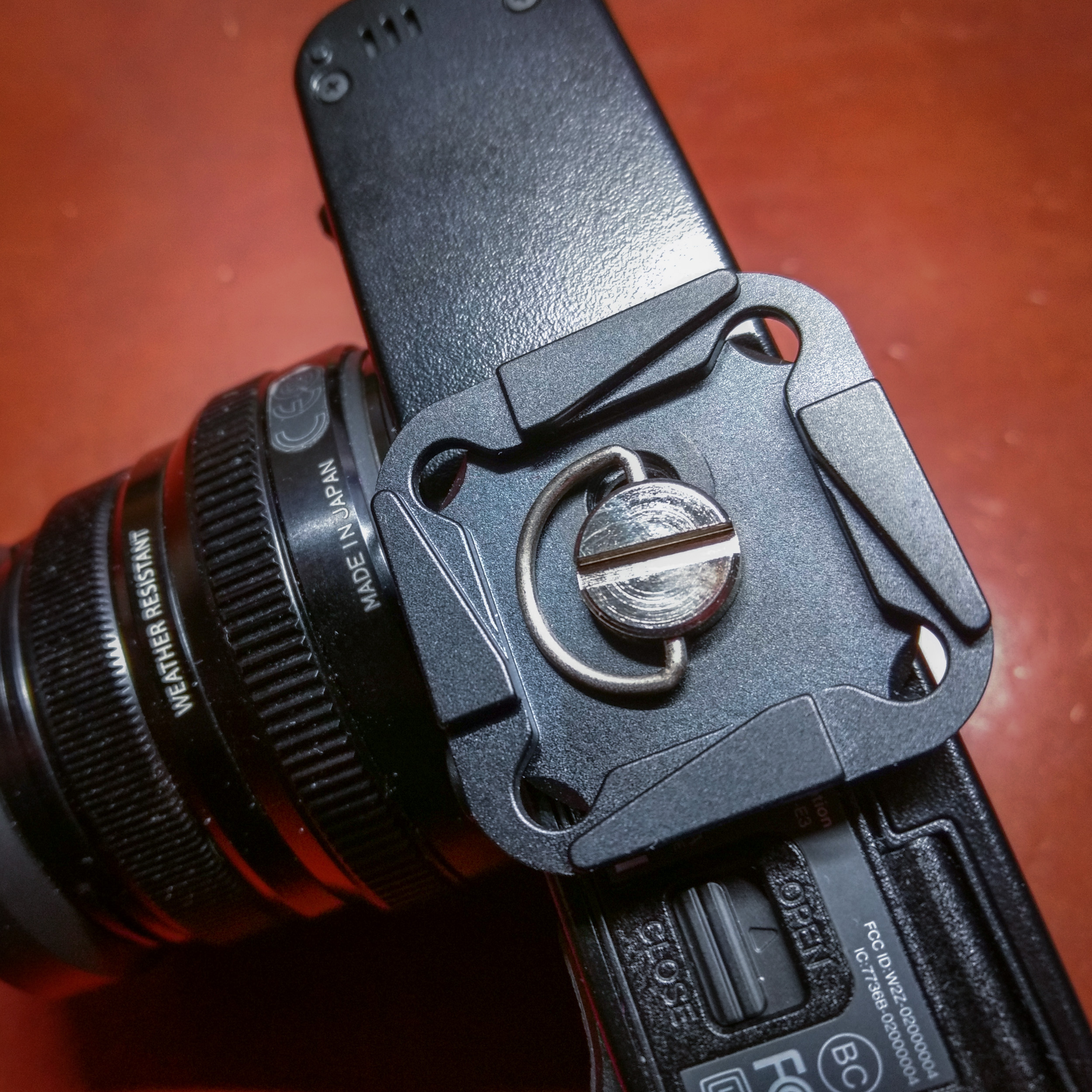 I have found an excellent solution to the problem. I first saw the Peak Design Capture Clip several years ago. It lets you clip your camera to a belt or strap and it has a quick-release lock that holds the camera in place so that it cannot accidentally fall out. However, two things put me off buying one at the time. First was the price, and secondly, I didn’t want the big heavy Nikon hanging off of my belt or backpack.