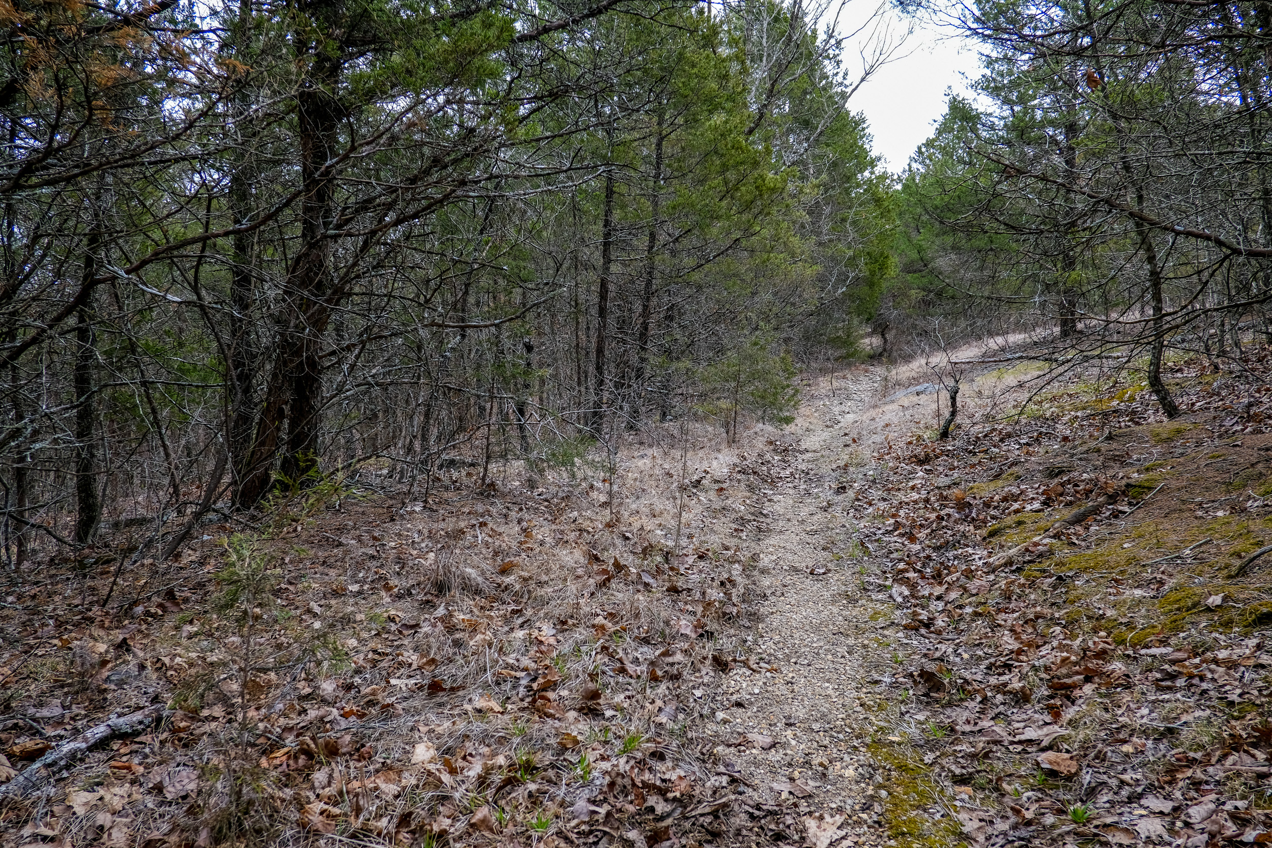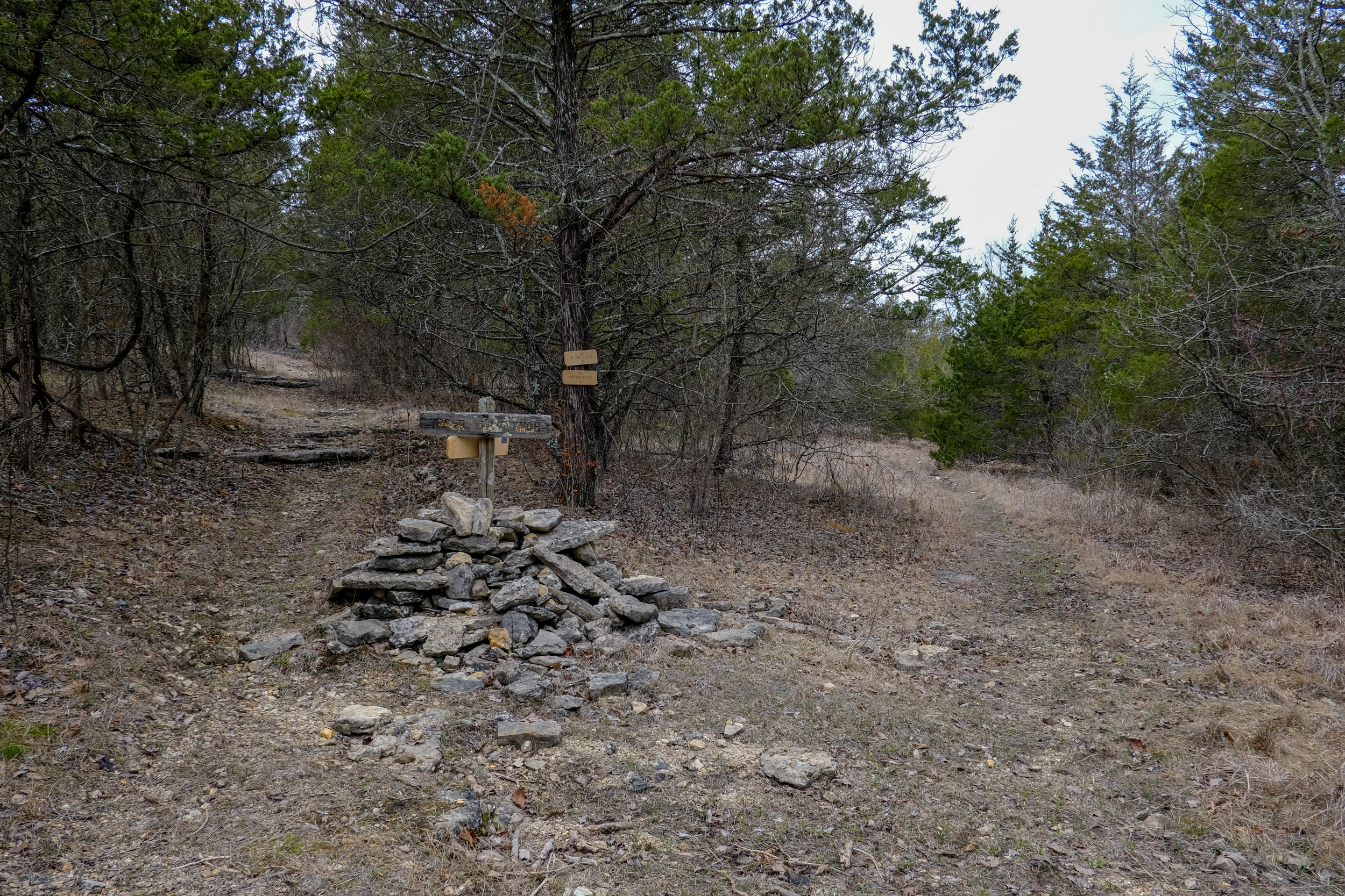 Hercules Glades is around a seventy-five minute (fifty-ish miles) drive from Springfield. I arrived at the Tower Trailhead just before 1:00 p.m. A couple of guys with a dog were getting ready to head down to the falls for the night. There was one other vehicle in the lot which augured well for a quiet trip. It wasn’t all good news though. On the drive down I got a call from Ginger. She asked where I’d got the dried milk for my breakfast cereal from. I told her, and was informed that I’d put in scoops of whey protein powder instead of milk powder! Oh well, the almonds and raisins I’d packed for my lunches and trail snacks would have to do for breakfast too.