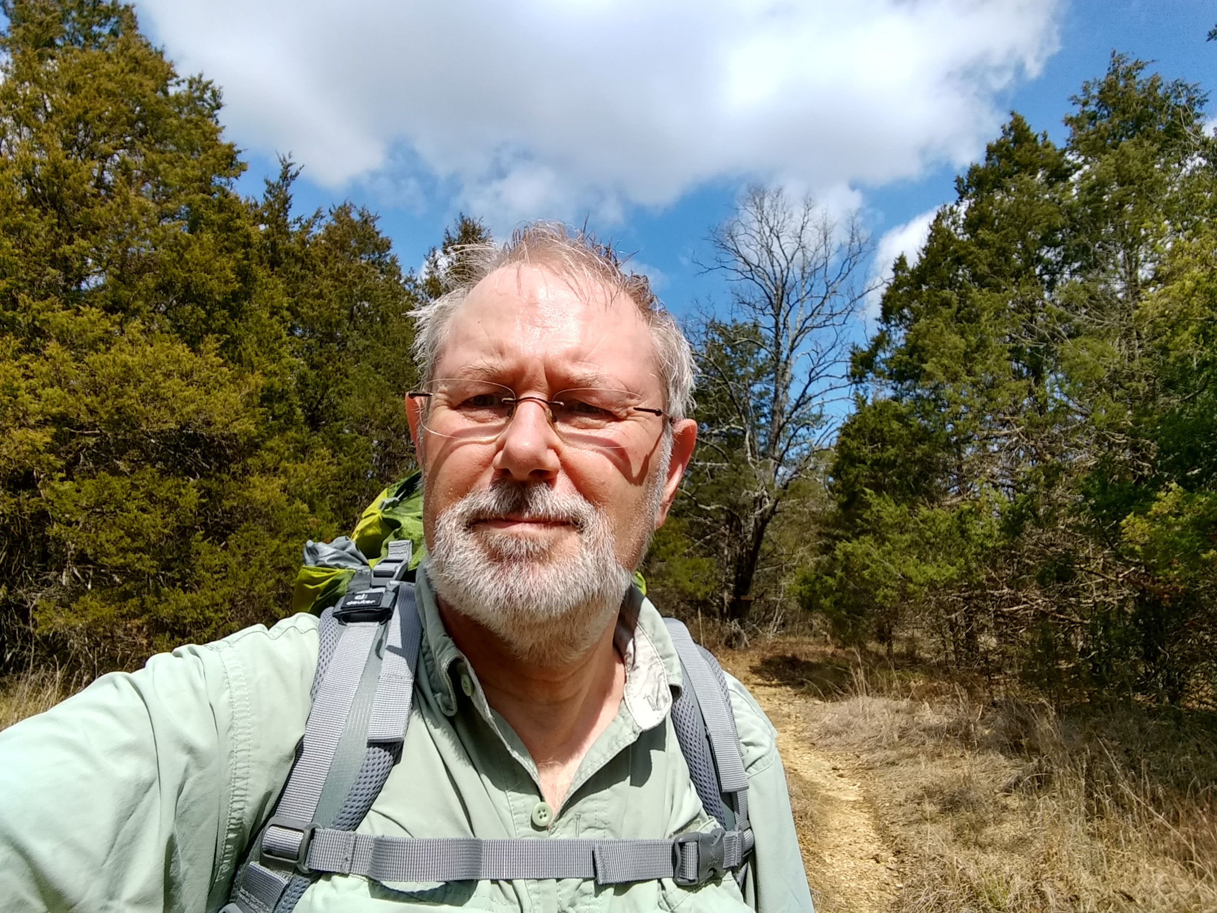 I woke up to a cold and overcast day with a promise of rain. I had wanted to hike out before the rain was scheduled to start, but my long sleep had put paid to that idea. I had two cups of coffee to warm up, then packed up camp, getting on the trail at 10:45 a.m. While loading my pack I saw my first tick of the season (a Lone Star tick). And sure enough, once home I found a couple having a feast.
