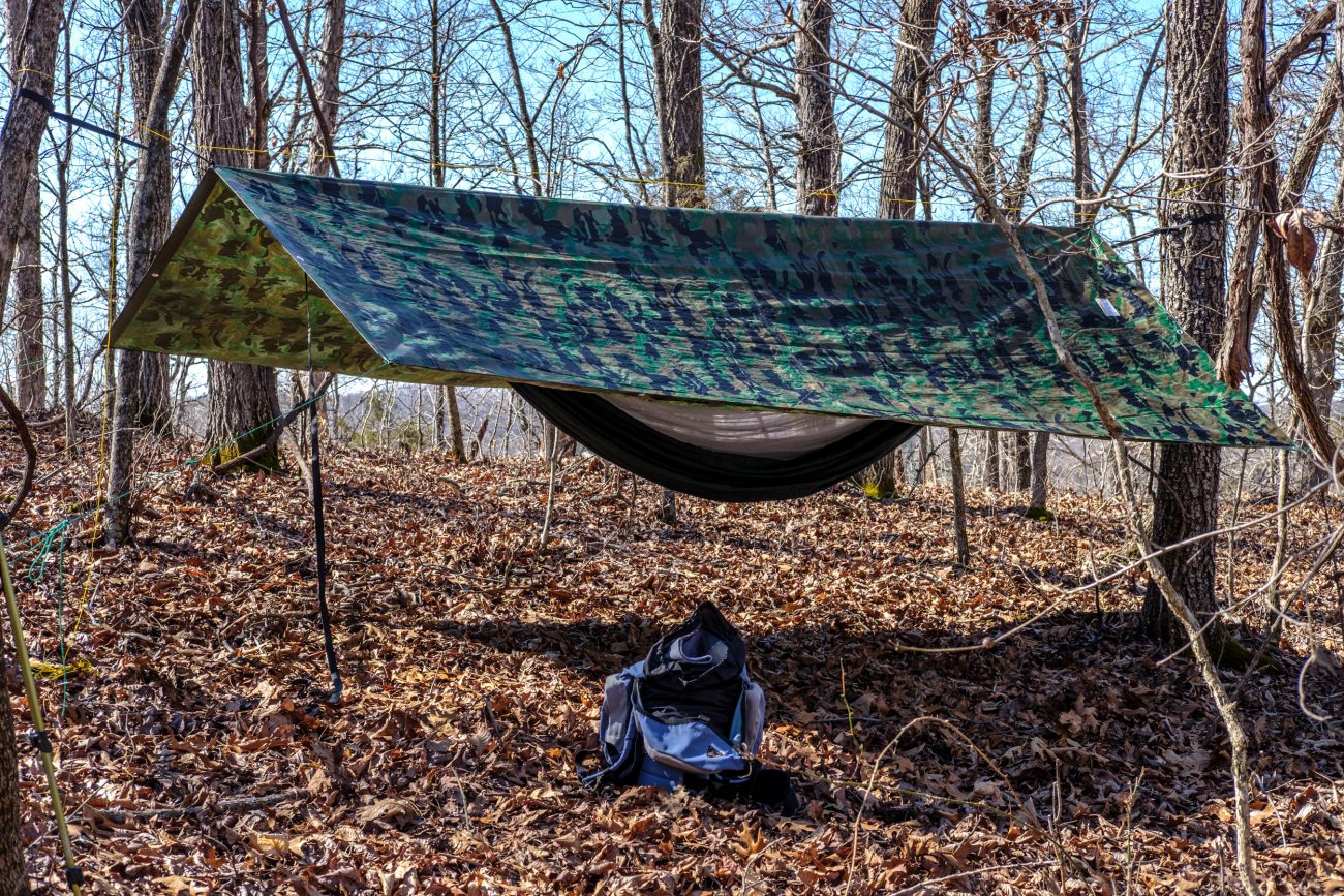I did some more research over the winter and as a result, I’ve set up a structural ridgeline on the hammock, and I spent a bit more money on a ridgeline for the tarp — as I’d had trouble setting the tarp without one.