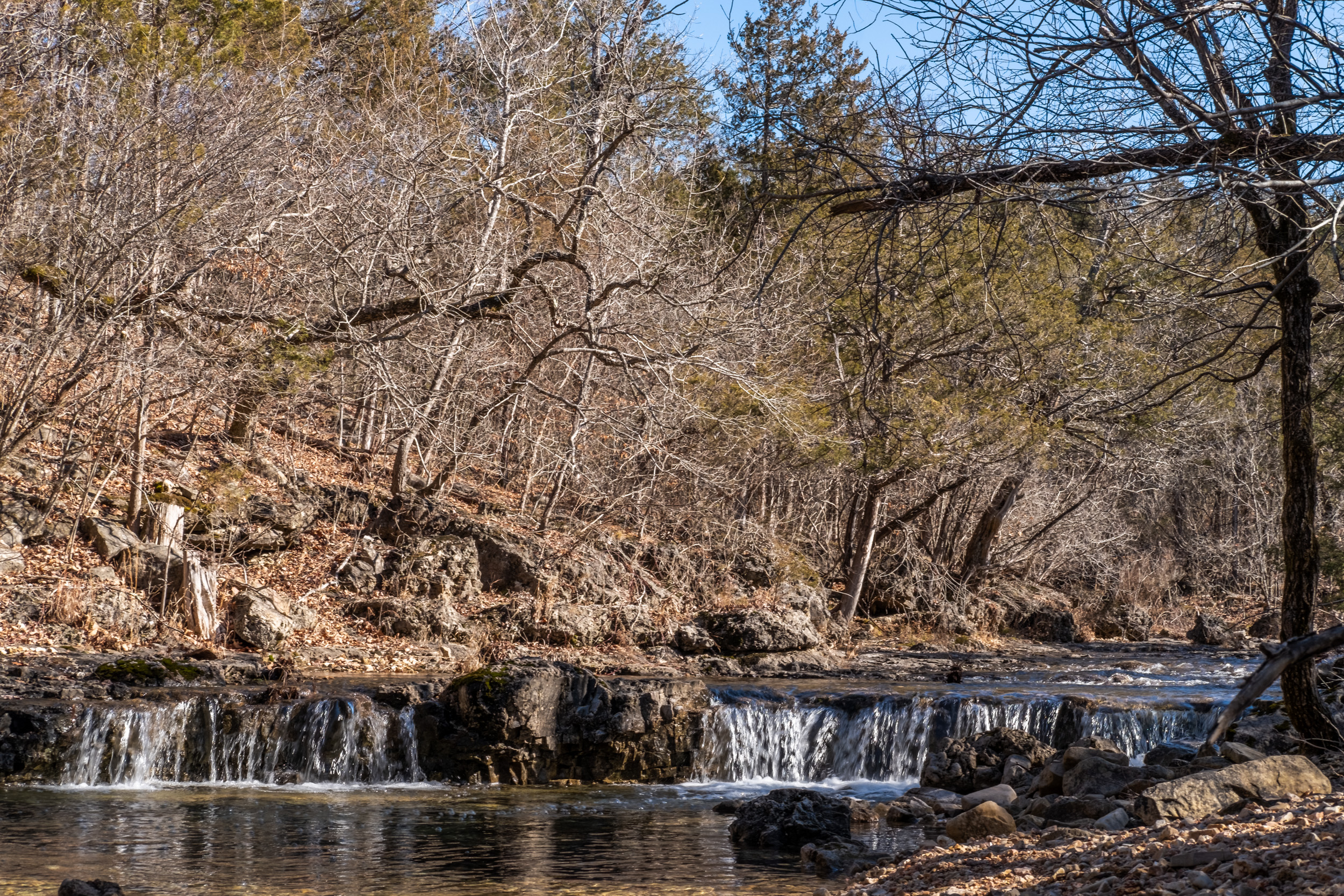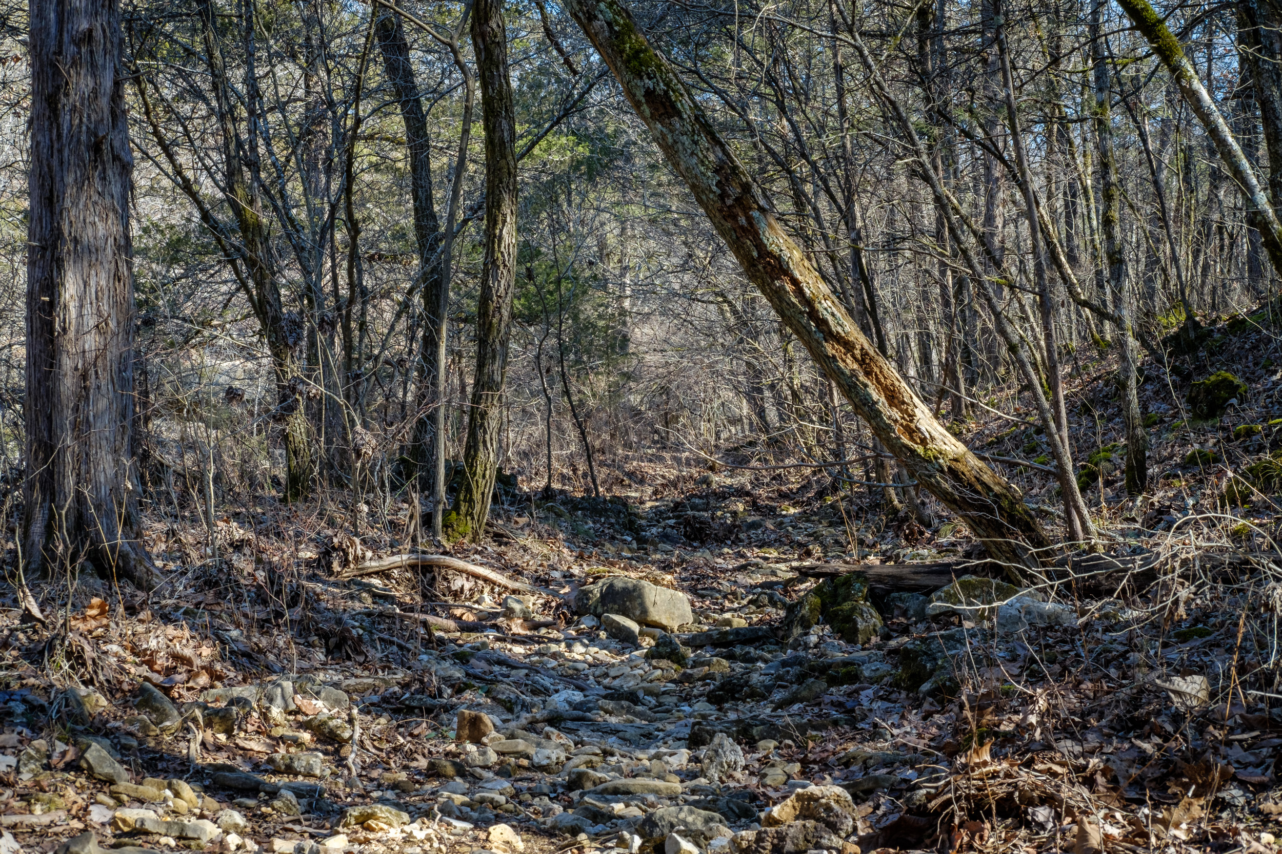 While exploring the creek I saw what looked to be a couple of good camping spots on the bluffs to the north of the creek. I packed up camp, crossed the creek and explored along the top of the bluffs — stopping to climb up the hill until I got a (weak) signal on my phone, and called home — when I got to the eastern end of the bluffs I found an ‘off system’ horse trail, and also found a campsite where you couldn’t possibly set up a tent.