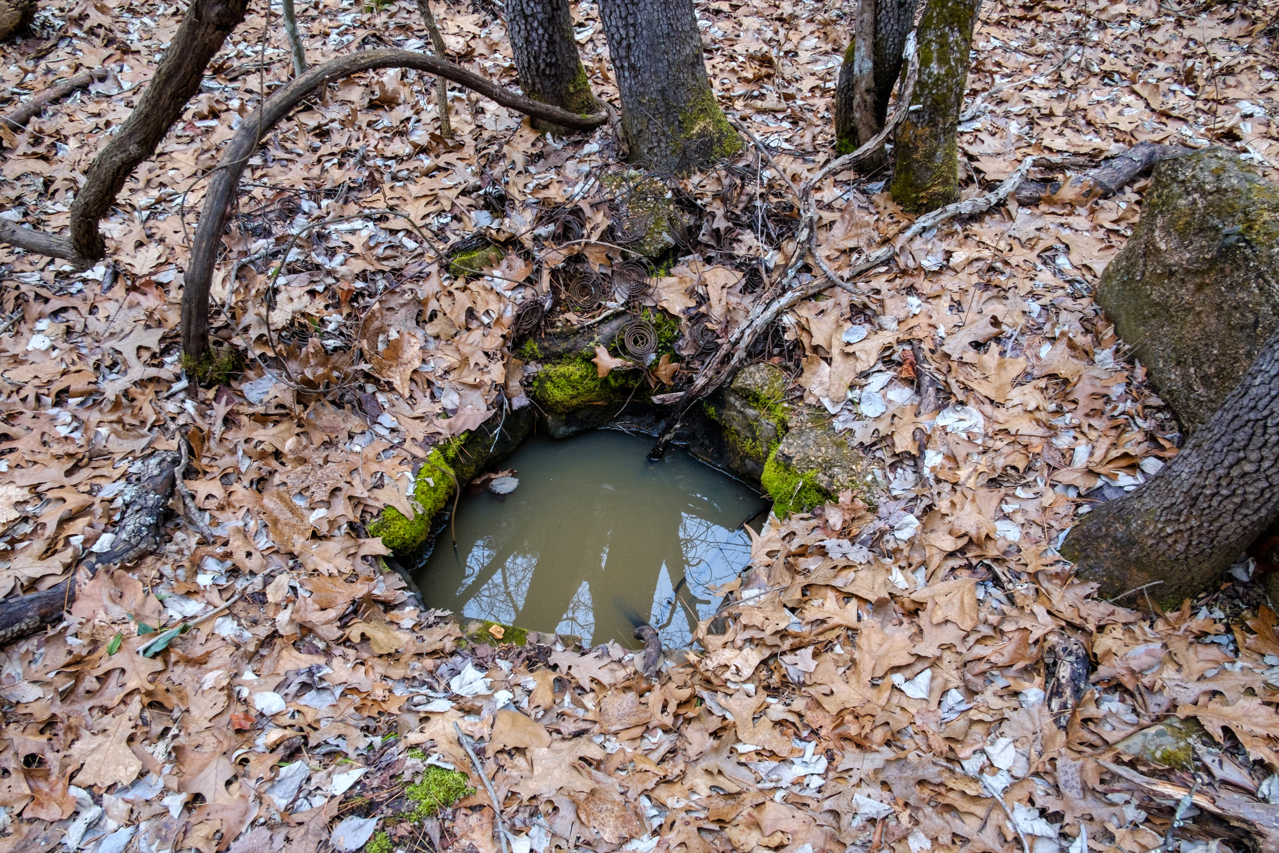 A couple of minutes later I noticed a spur-trail to the right running alongside an intermittent creek. Creeks and trails usually mean there’s something to see, so I followed the trail which ended in the creek plunging off of a sixty-foot Bluff, I suspect it looks spectacular when the creek is in spate.