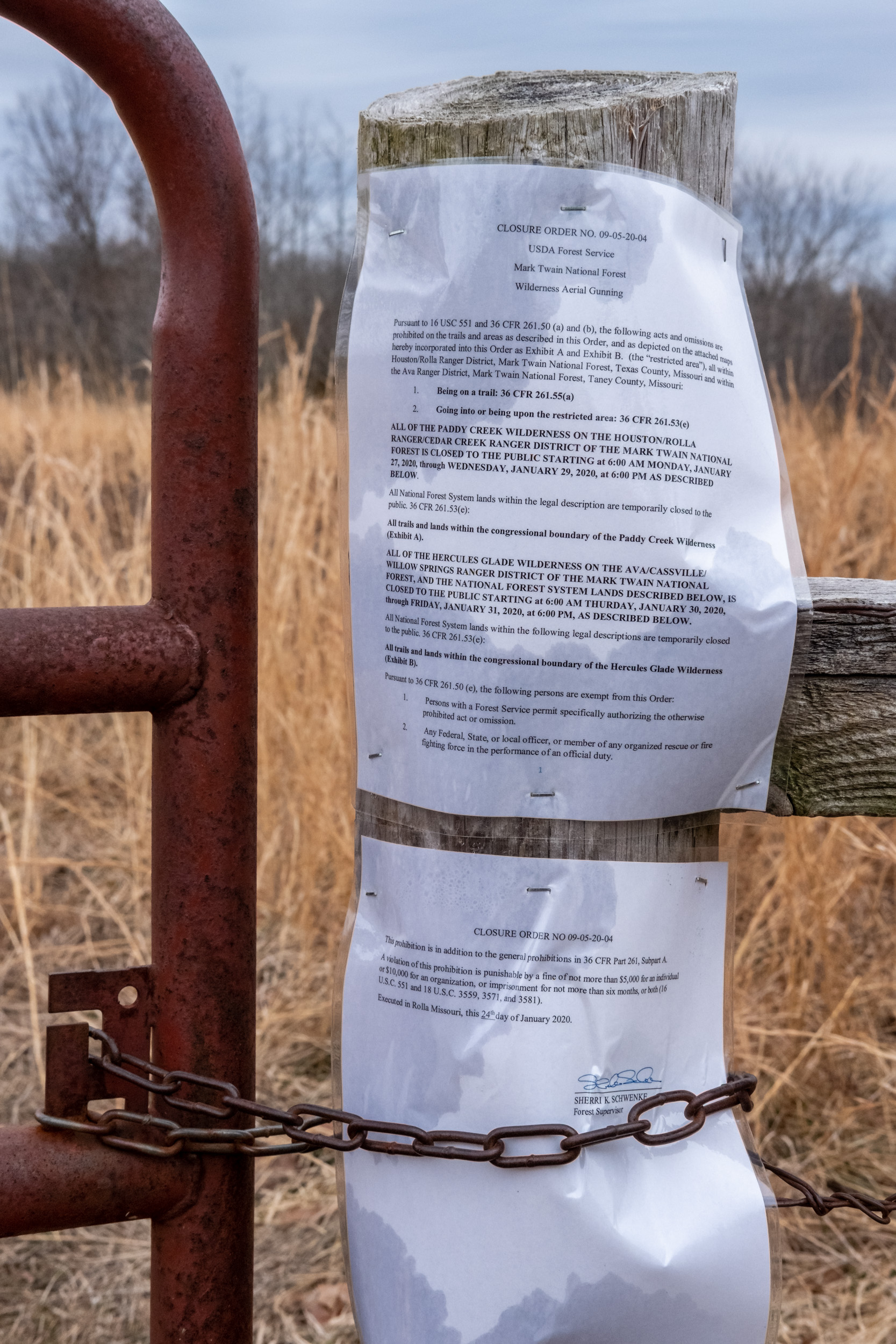A few minutes later, I followed along stopping to read the posted notices. The text stated the wilderness would be closed to the public from January 27-29, on pain of death. Okay, I exaggerate. It set a fine or not more than $5,000 or imprisonment for not more than six months or both!
