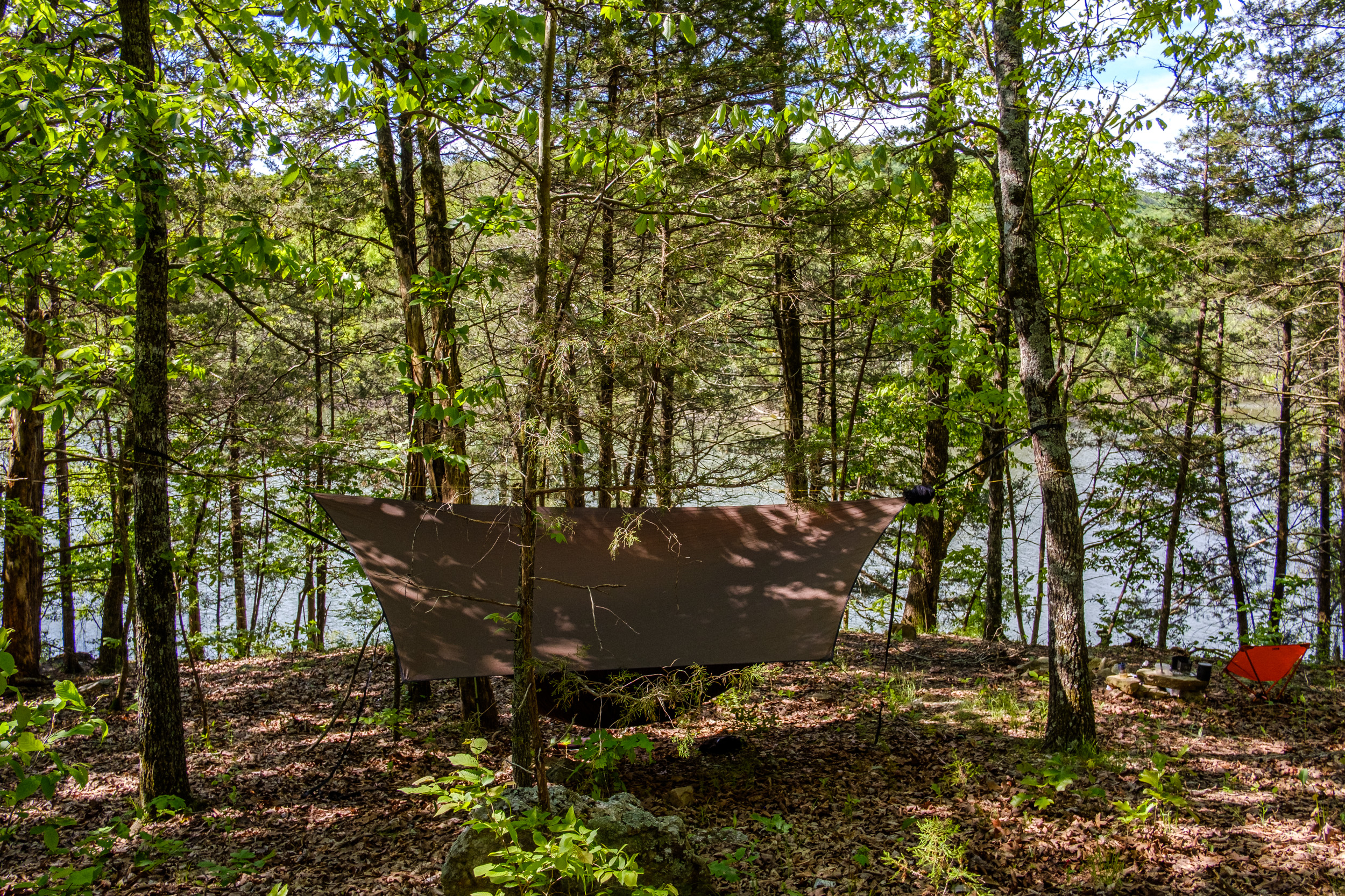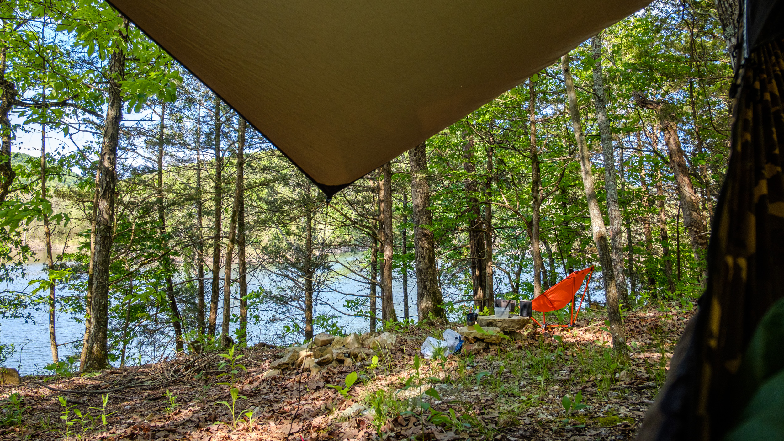 The view from my hammock. Piney Creek – Day Two. Copyright © 2020 Gary Allman, all rights reserved.
