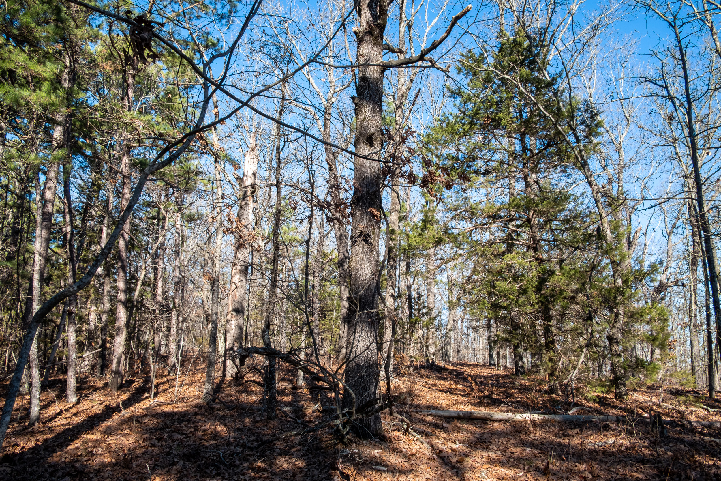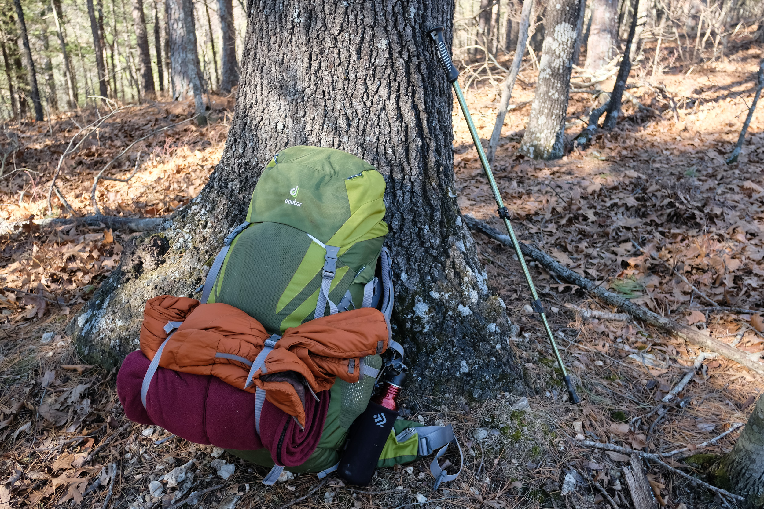 Here I am, about a mile in and I had warmed up enough to stop and take my jacket off and drink most of my water. I’ll be able to fill my water bottle up when I get to Piney Creek.