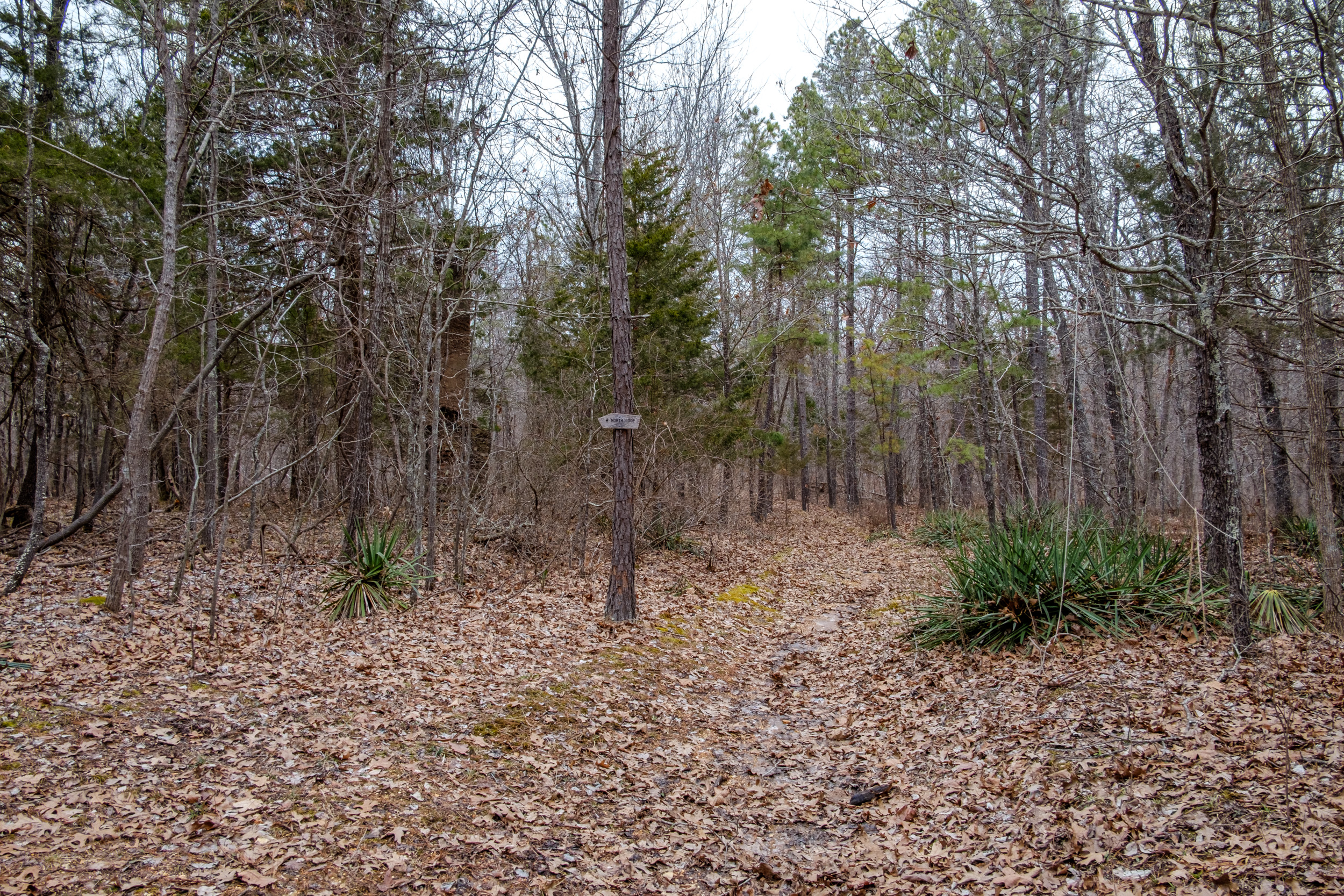 The climb up from Little Paddy Creek to the ridge is some three-hundred feet. Unlike some of the other climbs on this trail, it is a fairly gentle ascent. Once on the ridge, the trail is fairly even and in a little over thirty minutes I was at the site of the old homestead that marks the junction of the shortcut through to the North Loop.