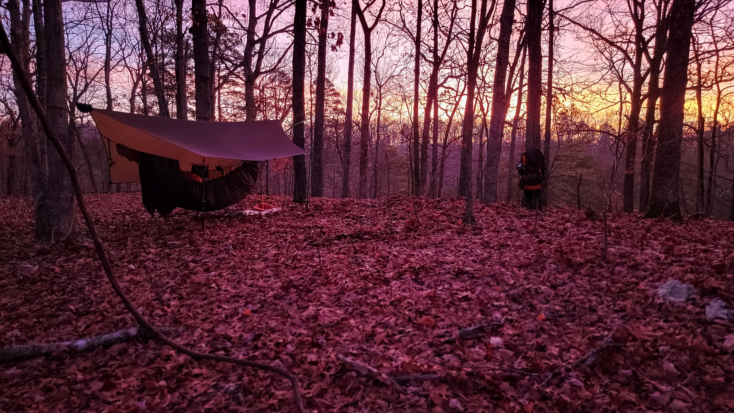 Camp at first light, Irish Wilderness February 1, 2024 6:55.