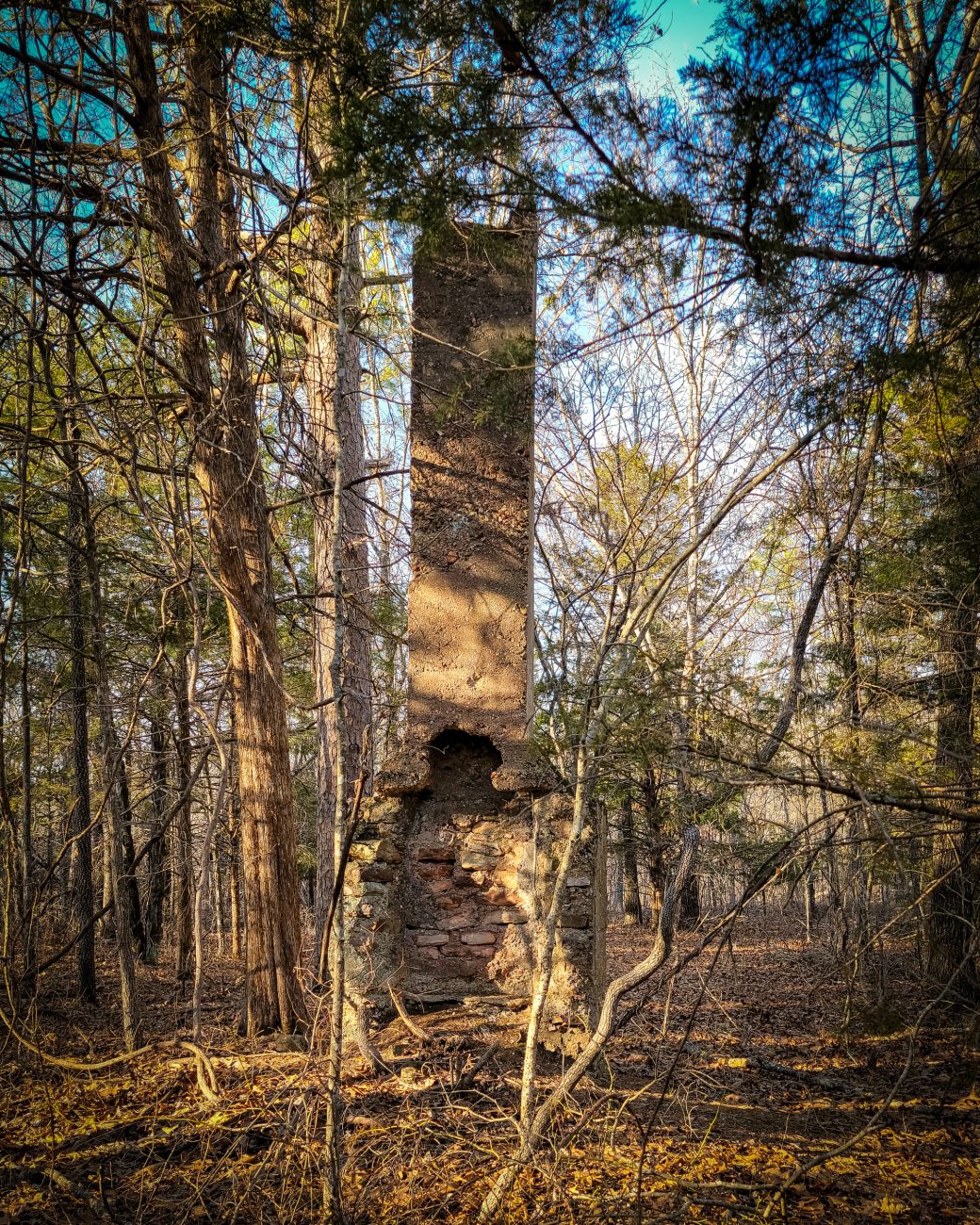 The homestead chimney at the junction of the South Loop and the shortcut to the North Loop, Paddy Creek Wilderness. There’s a well and circular foundation nearby too.