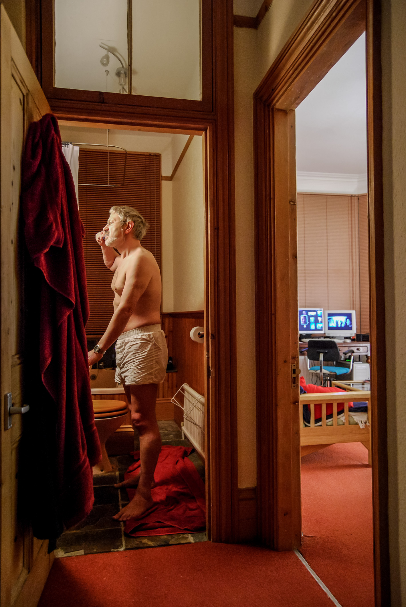 Reviewing the original pictures for this re-visit to my 2008 365 days, I was momentarily temped to use one of the two alternative shots I took of me brushing my teeth. One wearing shorts, and one wearing a shirt and shorts. I didn’t use them because I concluded that that was just an attempt at being seen as being ‘correct’, rather than a reflection on the reality of my days.