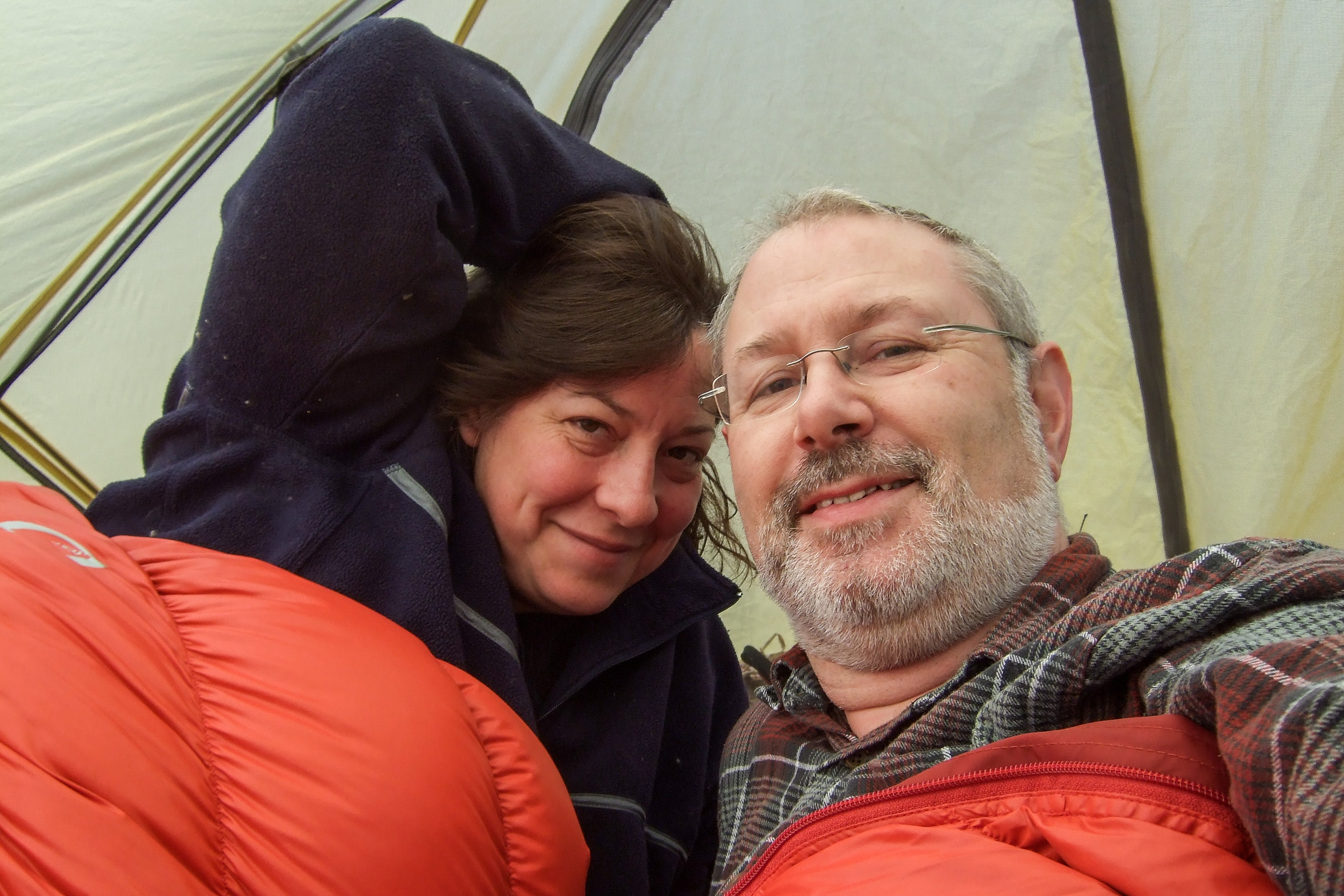 Not only was it dark, but it was raining heavily too. The first real test of our rain gear, and a challenge for me to remember how to put the tent up ‘fly first’, a cunning method which keeps the tent and contents dry. The rain gear worked great, and I mostly got the tent up fine; I say mostly because I made the mistake of staking it out before I’d put up the tent proper.