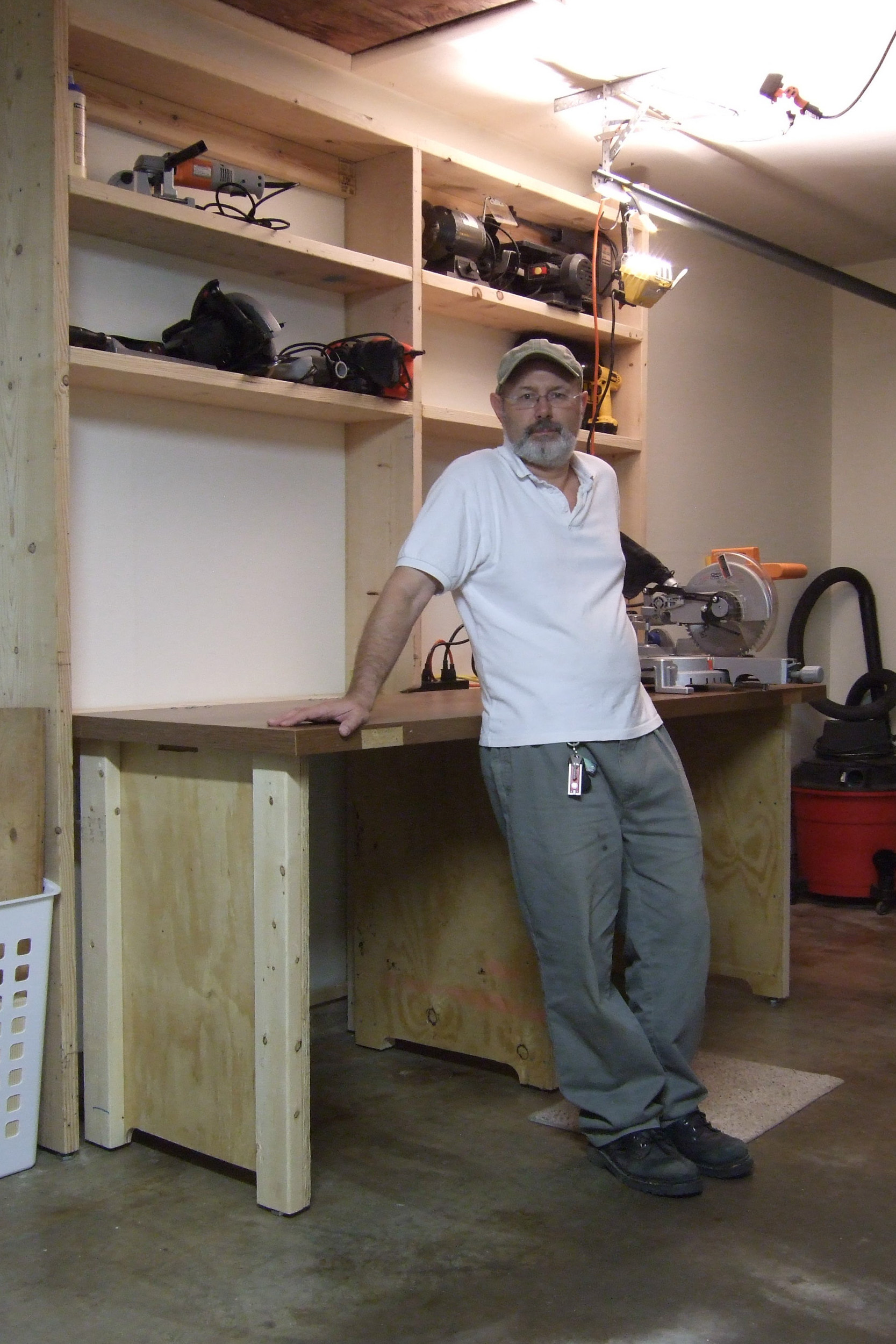 I thought all this Do It Yourself work was a fitting excuse to take a picture of myself and the completed workbench.